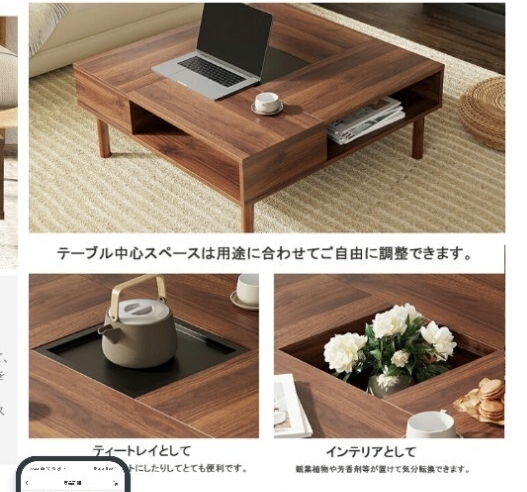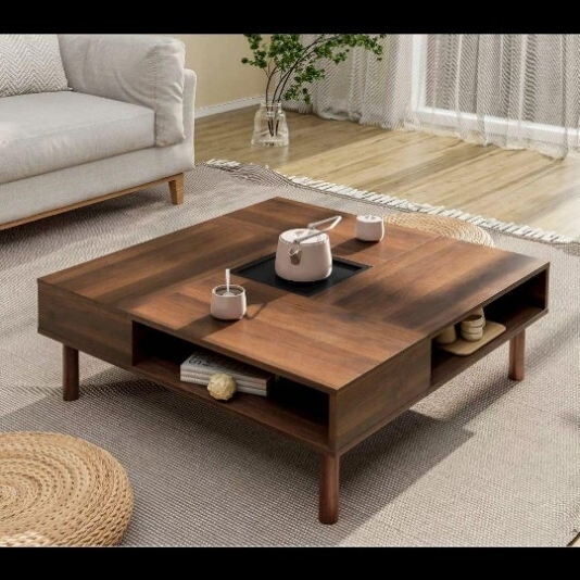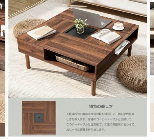 天板は四つの高級な木目の板を接合して、幾何学的な美しさを与えます。普通のコーヒーテーブルと比較して、このローテーブルは正方形で、和室の雰囲気に合わせて、おしゃれな部屋を作り出します。