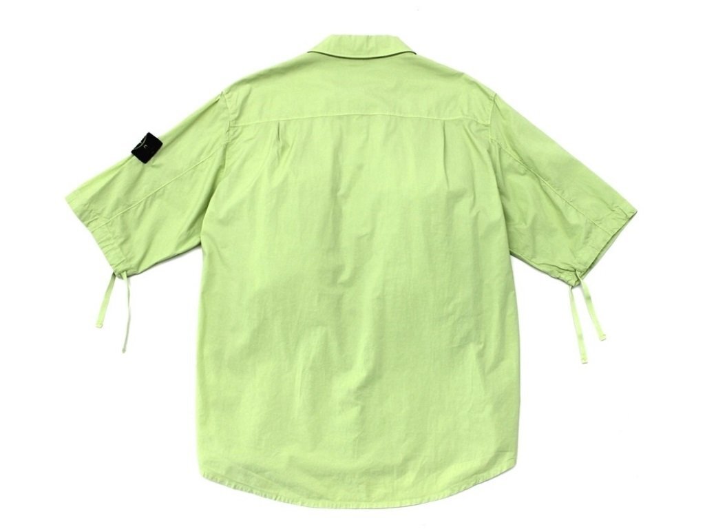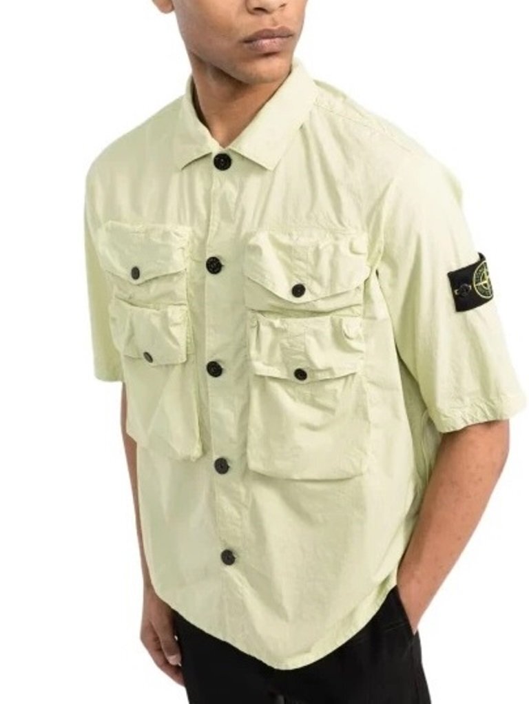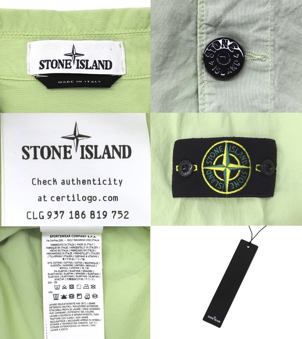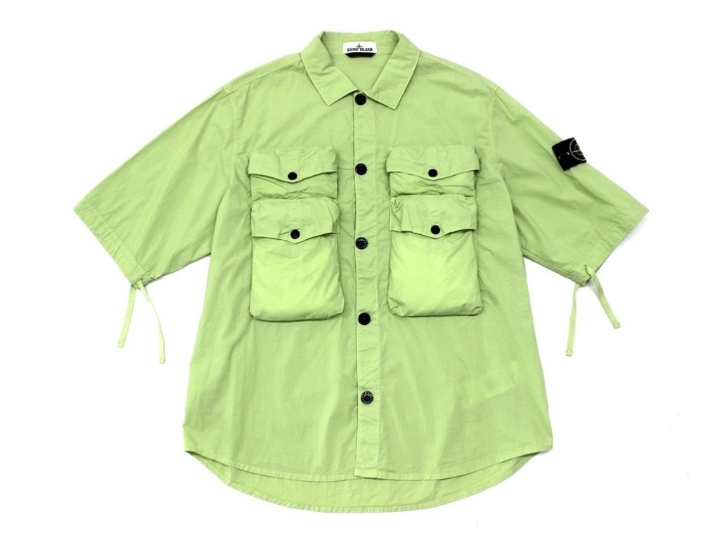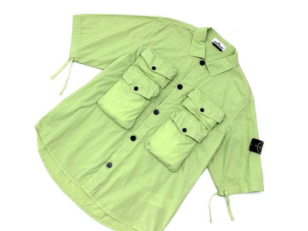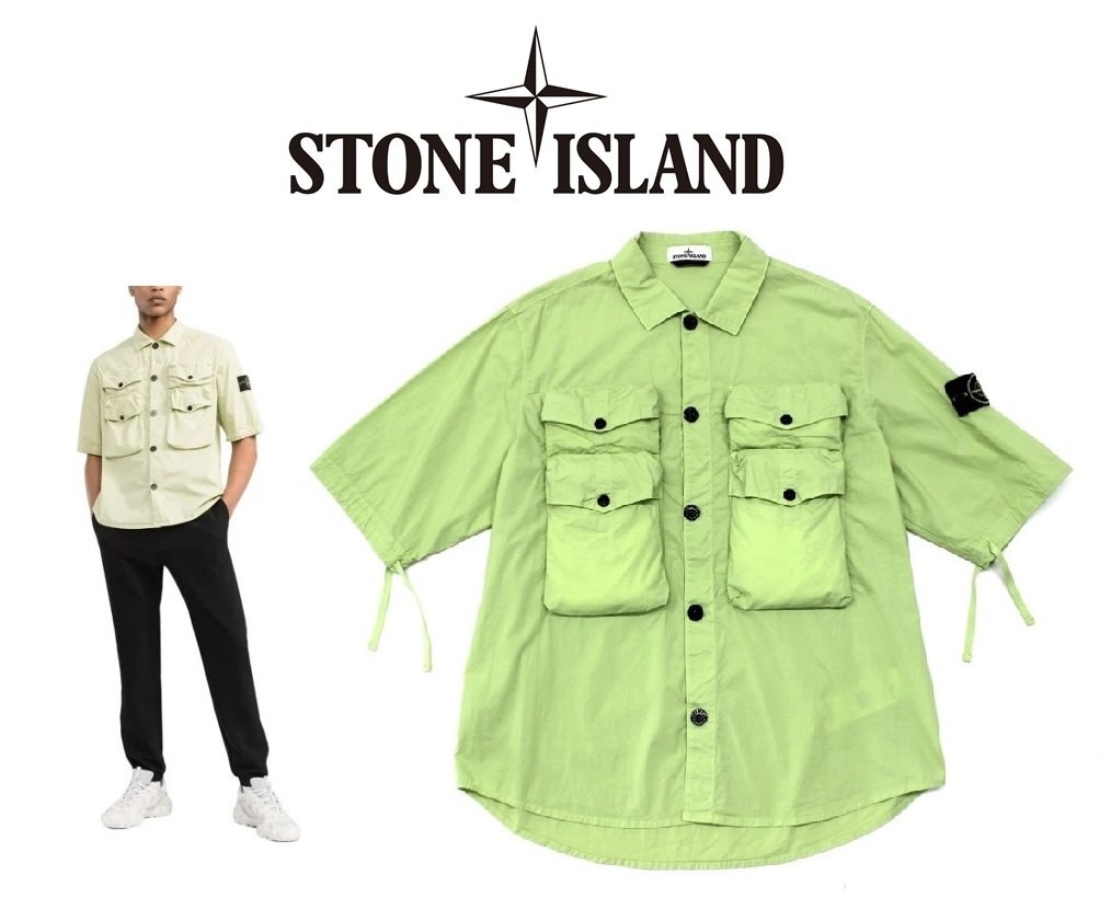 17万新品◆XL◆STONE ISLAND ストーンアイランド◆コンパスロゴパッチ ダブルポケット ガーメントダイシャツ ライトグリーン黄緑