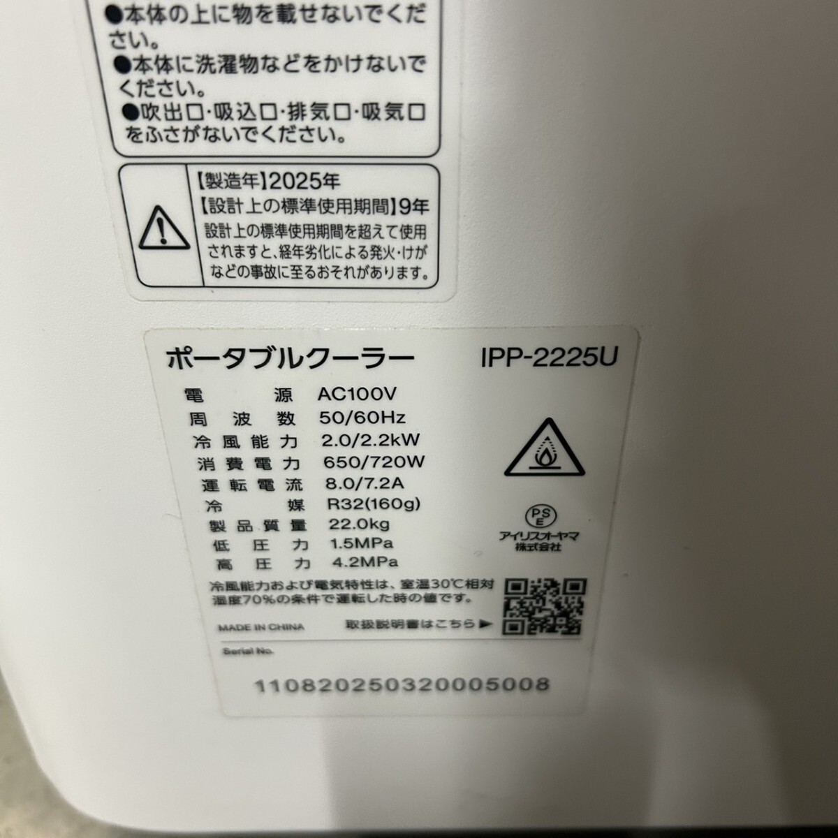 2025年製 IRIS OHYAMA IPP-2225U スポット クーラー アイリスオーヤマ 冷風 送風 除湿 動作確認済み