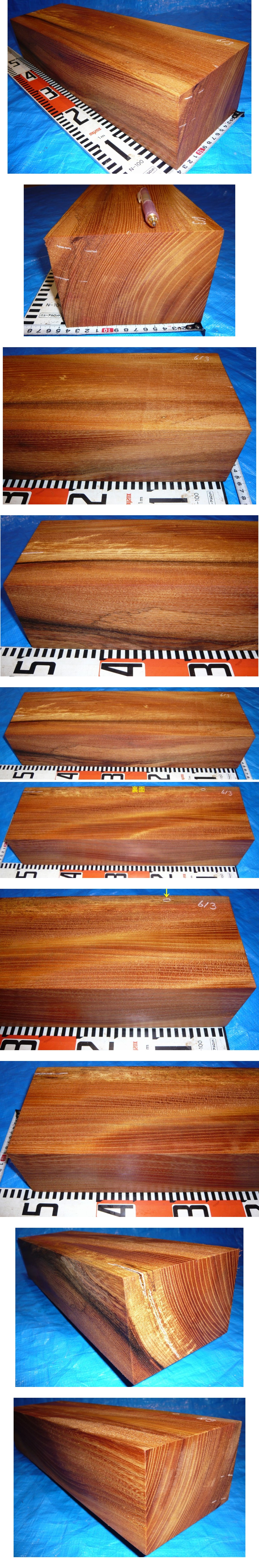 ★紅欅 角★ケヤキ★杢★糠目杢 山梨恩賜林材★DIY材に【613】ハンドメイド ●サイズ● 長さ485mm・幅140mm・厚100mm・・★ (多少の誤差が在る場合が有ります.) ●状態● 傷・ヒビ割れ・木口割れ・欠け部分・シミ部分・鉋傷(逆目・段差)、その他見落としがある場合もございます。 4面プレーナーに通してありますが、刃こぼれ跡のライン・傷が在るかも?。 (プレナー加工は反り落とし、厚みだしですので刃の状態、木肌の質により逆目や毛羽立ちなどはございます。) 木目を見るために水で濡らして撮影しています。 乾燥20年材・画像を良くご覧下さい。 ●注意事項● ◆◆当店の出品は完成品では有りませんので、木工用・DIY材料としてお使いください。◆◆ 割れ・節・傷・汚れ・反り・虫食い跡・サカメ・プレナーの段付き等ありますので、 サンダー等で仕上げる前提でお願いいたします。 メジャー・定規は商品ではありません。 無垢材ですので傷・割れ・穴・虫穴・反り・捻じれ・変色・カビ・等がで在る事が在ります。 神経質な方の入札は、絶対にお断りします。 木目を見るために水で濡らして撮影しています。 ◆◆発送は出来るだけまとめて発送しますが、商品代金のお支払いは個別でお願いします。◆◆ オークション終了日より3日以内に連絡を頂ける方でお願いします。 3日以内までに連絡頂け無い場合は購入意志が無いと判断し 次点繰上げを行いますのでご了承ください。 その際にシステム上非常に悪いの評価が付くことはご理解ください。 ■送料について■ ・送料は元払い限定(着払いは対応していません)。 ***ヤマト便で発送致します。*** (80サイズで) **複数落札いただくと送料が割安になります (25kgまでは1個で発送いたします。) ***ご入金確認後、ただちに発送いたします。 ◆◆注意事項 ヤフーの落札メールにコメントがあります。◆◆ 当社の【URL】https://r.goope.jp/woodluck-suzuki