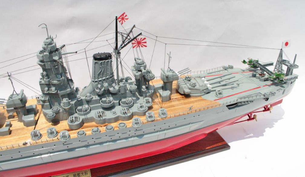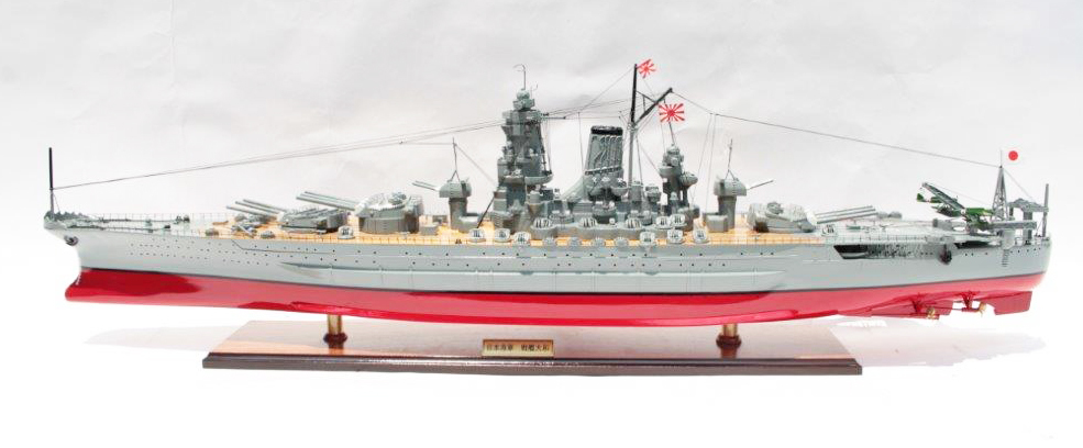 新品 全長263m、速力27ノット、乗員2500名、不沈戦艦と呼ばれた世界最大の主砲を備えた日本海軍最強の戦艦大和。 一枚一枚の板をキールに沿って貼り合わせて精密に製作、全て木製手作りでプラスチック類は使用していません。主砲台は固定されておらず回転可能、日本語真鍮銘板付き。 当店オリジナル品として 各部をより詳細に改良致しました。 商品は木枠ケースに包まれて厳重に梱包されて発送されます。サイズ:120cm長x 37cm高x 20cm幅 即納です。