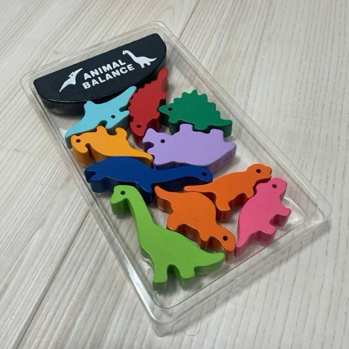 恐竜の形をした積木ブロック、カラフルで小さなお子様にちょうど良いサイズの手触りの良い木製おもちゃです。