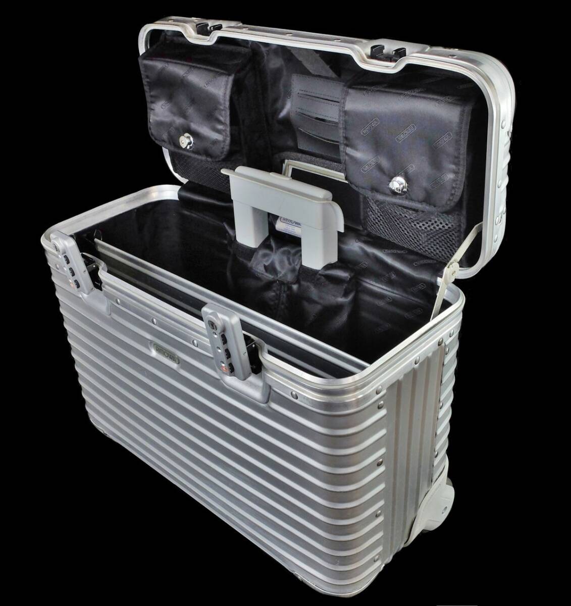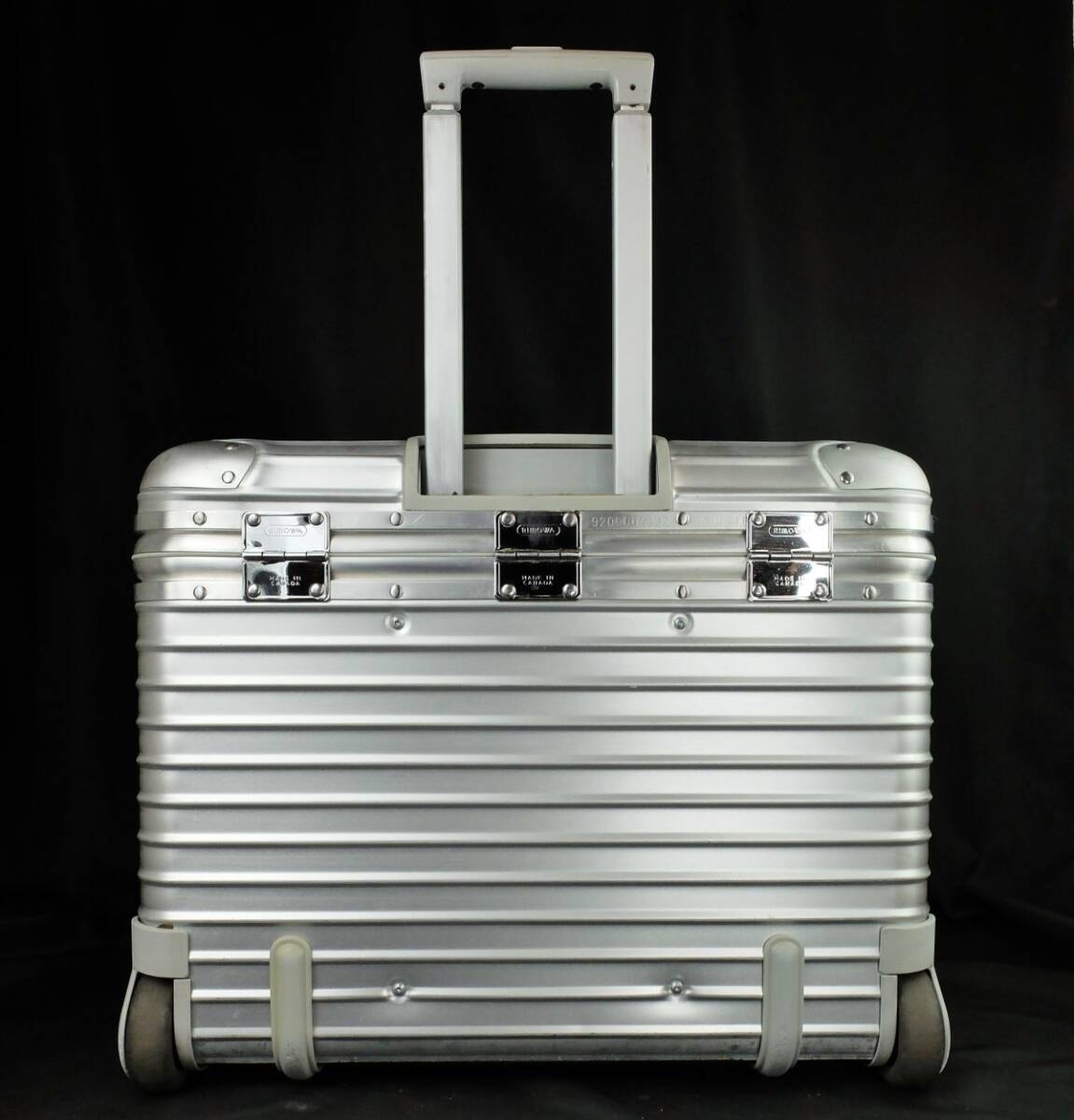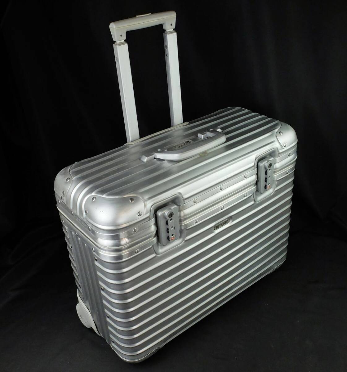 ■RIMOWA トパーズ の928.50ベースの限定仕様920.90、TSA2輪パイロット・トロリーのビンテージです。36LのTSAコンビネーションロック、メタルロゴの2輪最終仕様で(M&A前の)アルミニウム製のパイロットケースの絶版時、最後まで生産を持続したカナダ製です。1~2泊の出張もこなせる容量を持ち貴重品・精密機械などの運搬にも使えるアルミニウム・トロリーです。