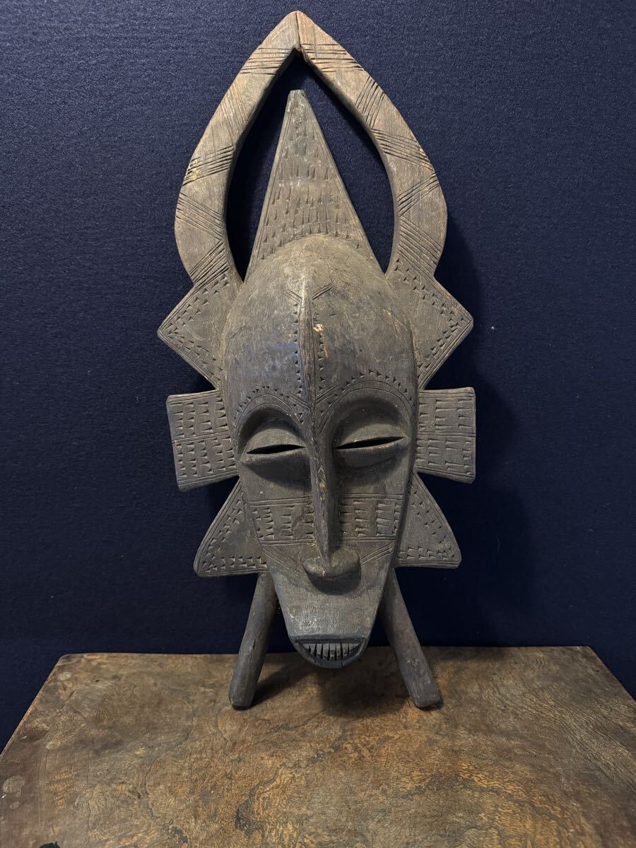 アフリカ セヌフォ お面 マスク 仮面 木彫り アンティーク 彫刻 プリミティブアート コートジボワール 置物 セヌホ