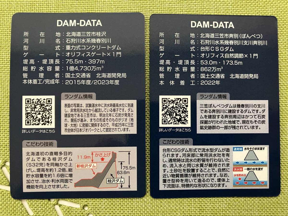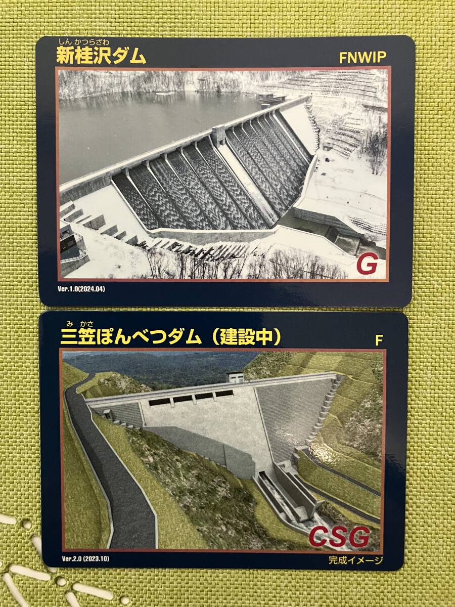 | 国土交通省北海道開発局が管理する「新桂沢ダム」と「三笠ぽんべつダム(建設中)」のダムカードになります。 入手後スリーブケースに入れ保管しております。 手渡し配布品につき薄い擦れ跡などがある場合があります。 | ||