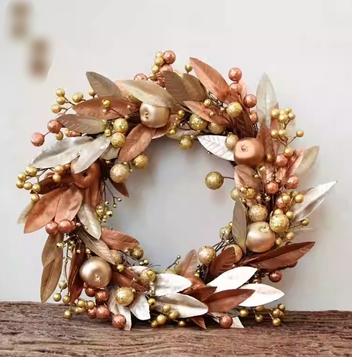 クリスマスリース★クリスマスデコレーション★ハンドメイド★壁飾り★ウォールデコ造花★玄関リース★パーティー用★金色リース★新品