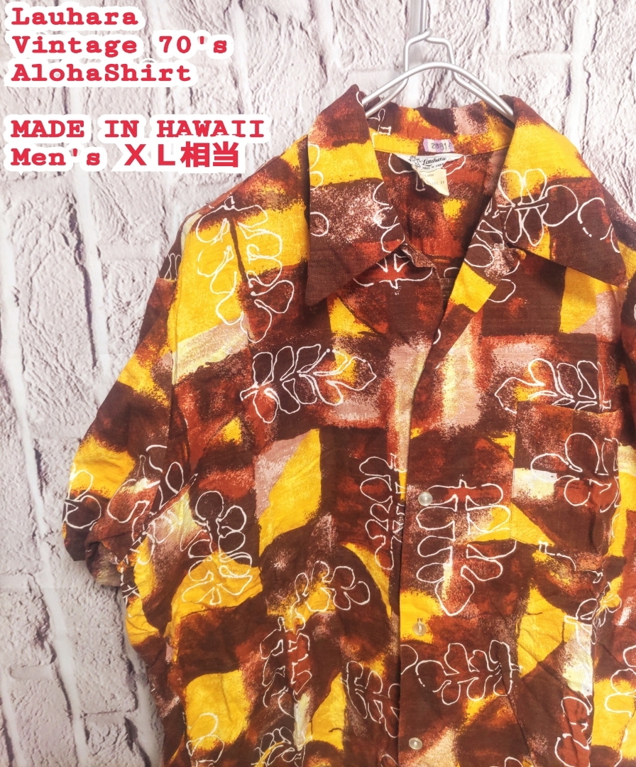 ★送料無料★ US古着 Lauhara アロハシャツ 70's アロハシャツ ハワイアンシャツ ハワイ製 XL 相当
