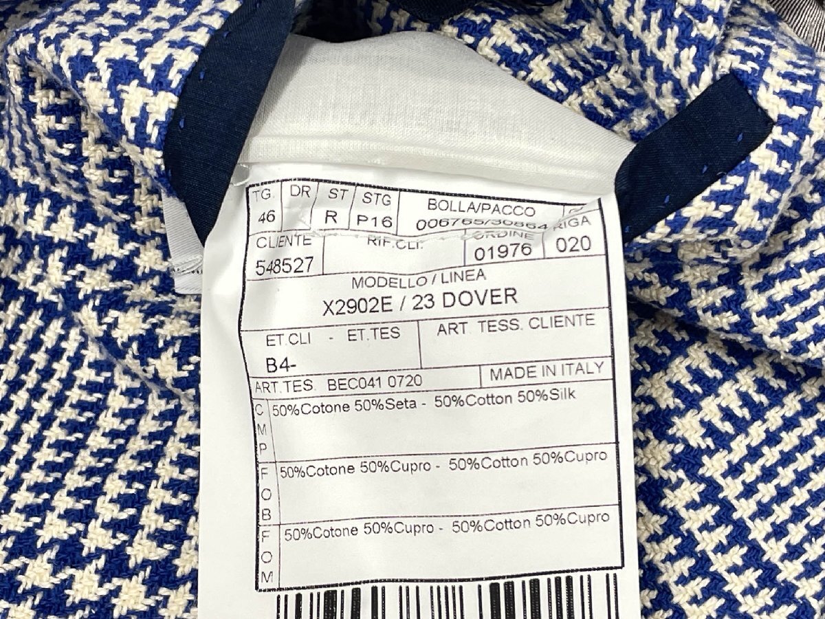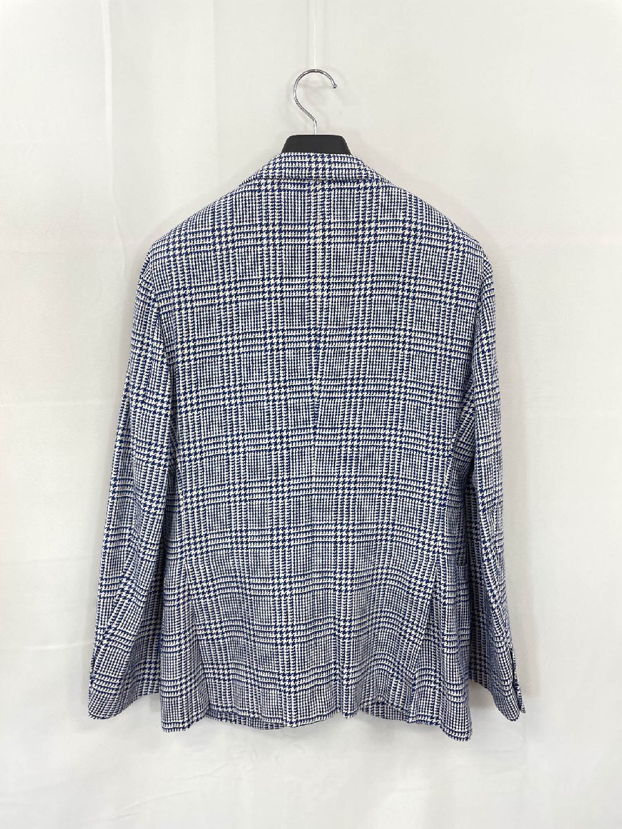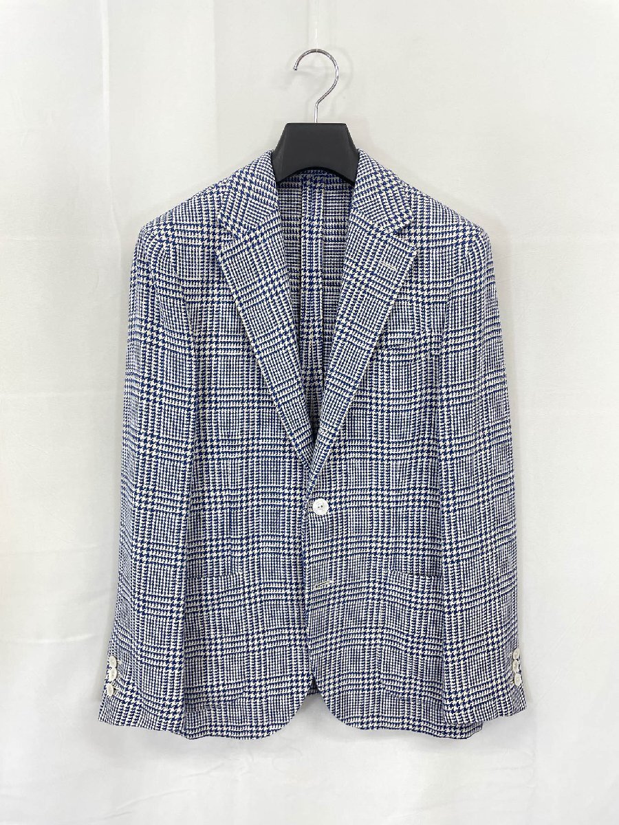 超美品【BOGLIOLI ボリオリ】X2902E/DOVER 絹×コットン 3B段返り グレンチェック織柄 アンコンジャケット(メンズ)46R 青系 伊製◇17MJ0700