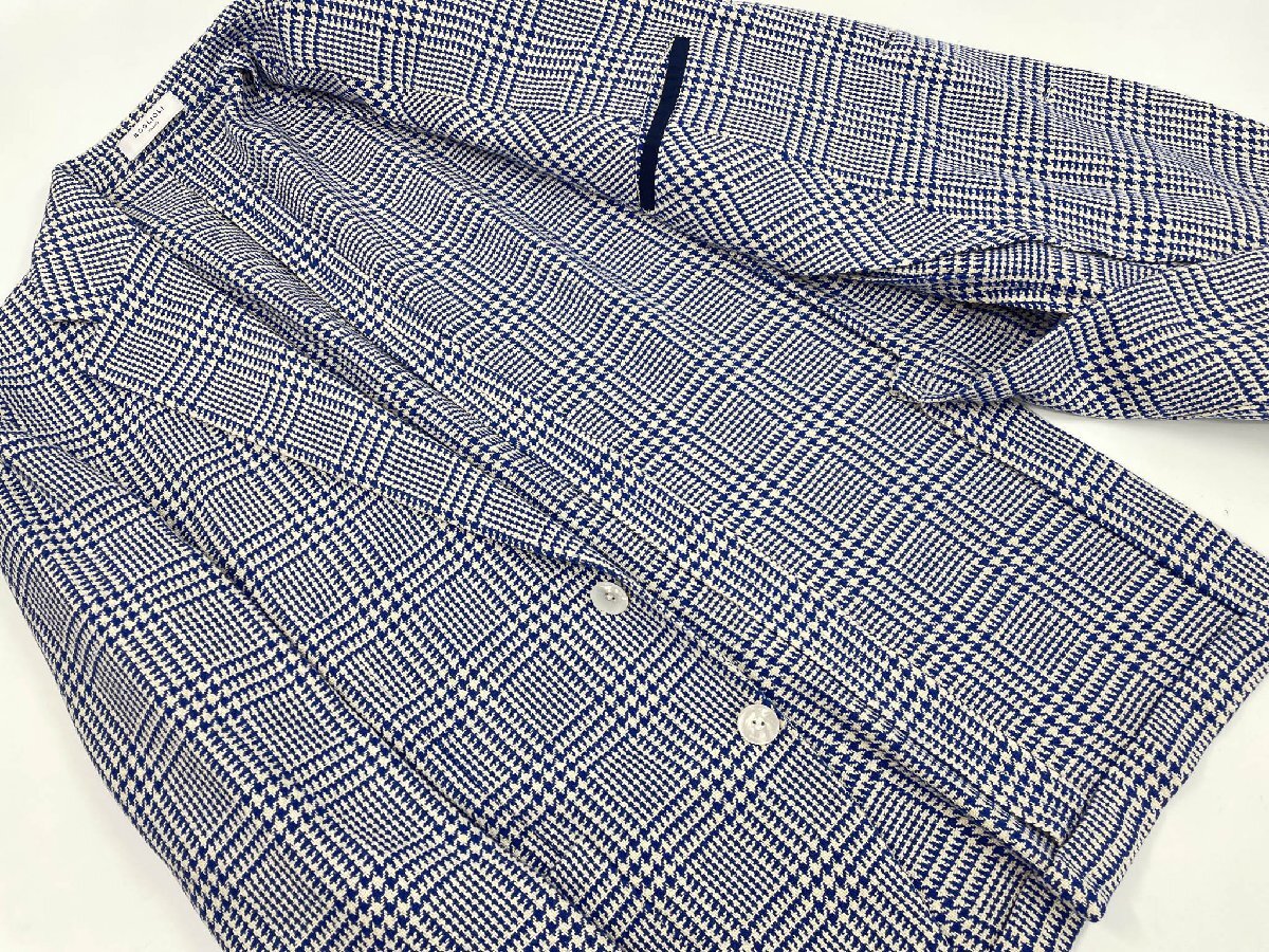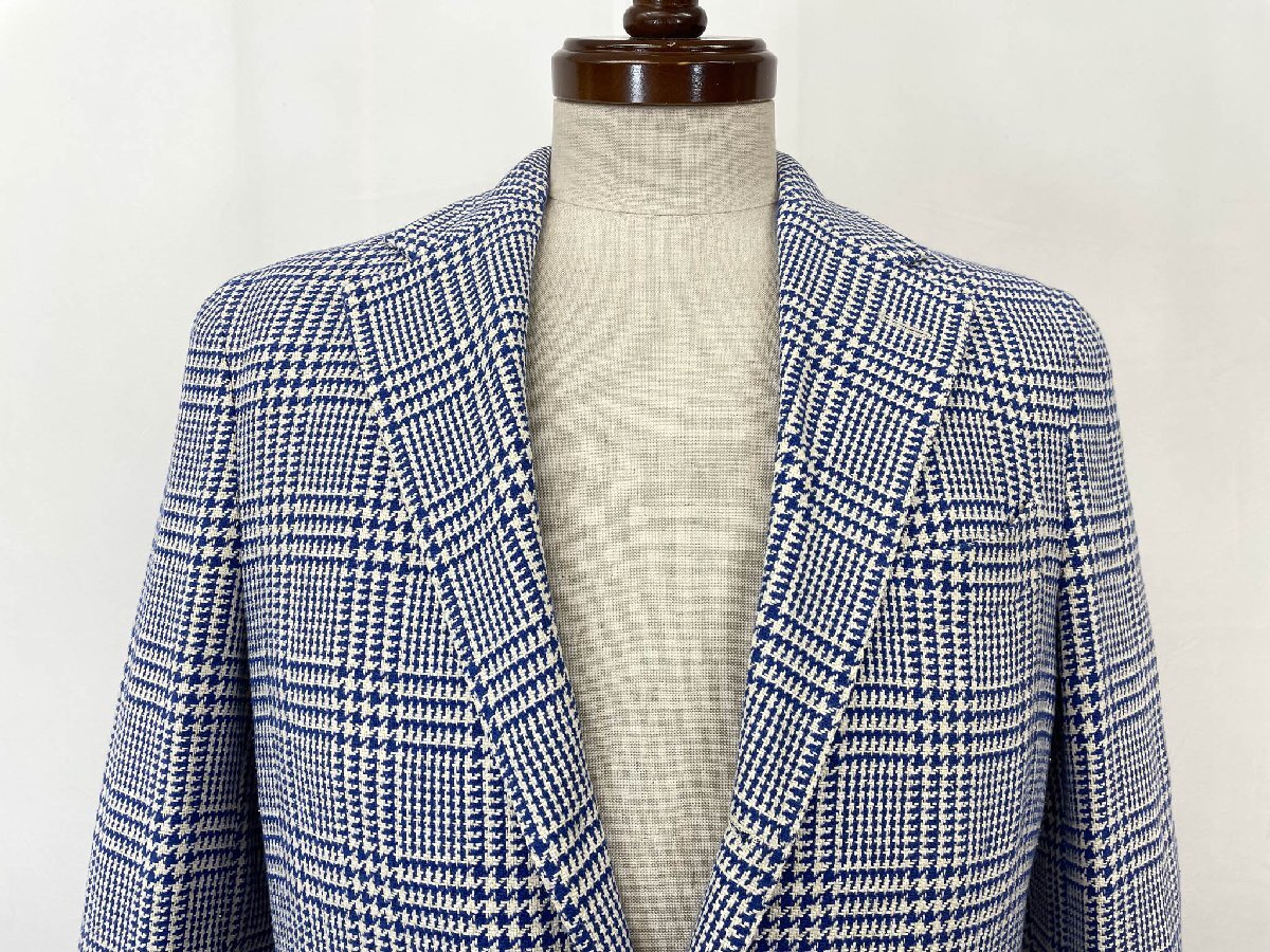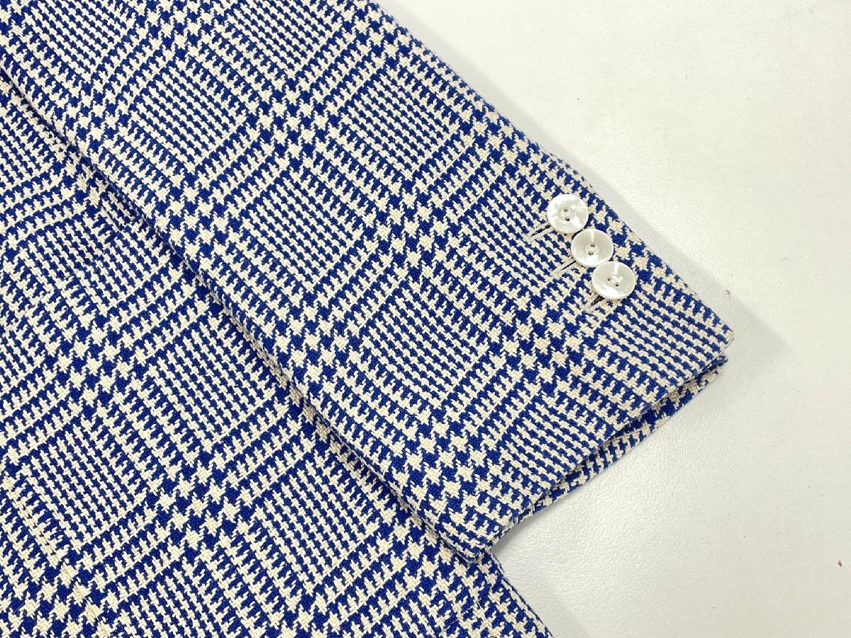 超美品【BOGLIOLI ボリオリ】X2902E/DOVER 絹×コットン 3B段返り グレンチェック織柄 アンコンジャケット(メンズ)46R 青系 伊製◇17MJ0700