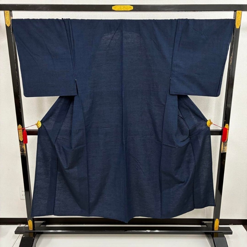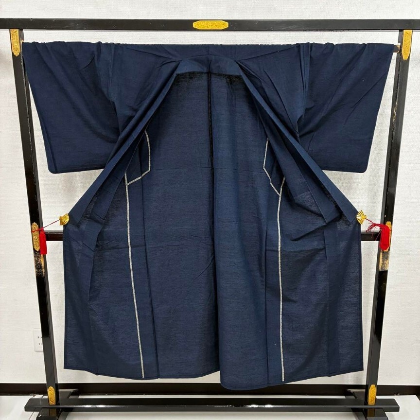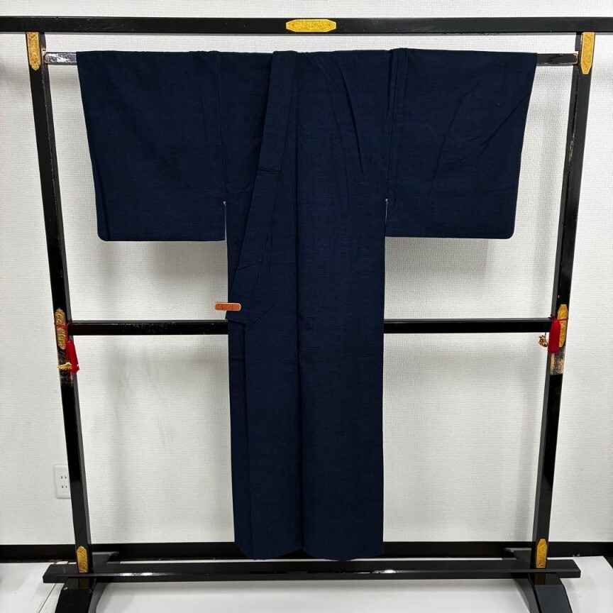 【楓】裄70.5 紳士着物 正絹 真綿紬 紺地 KU-9320