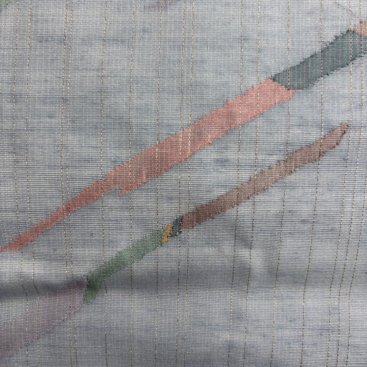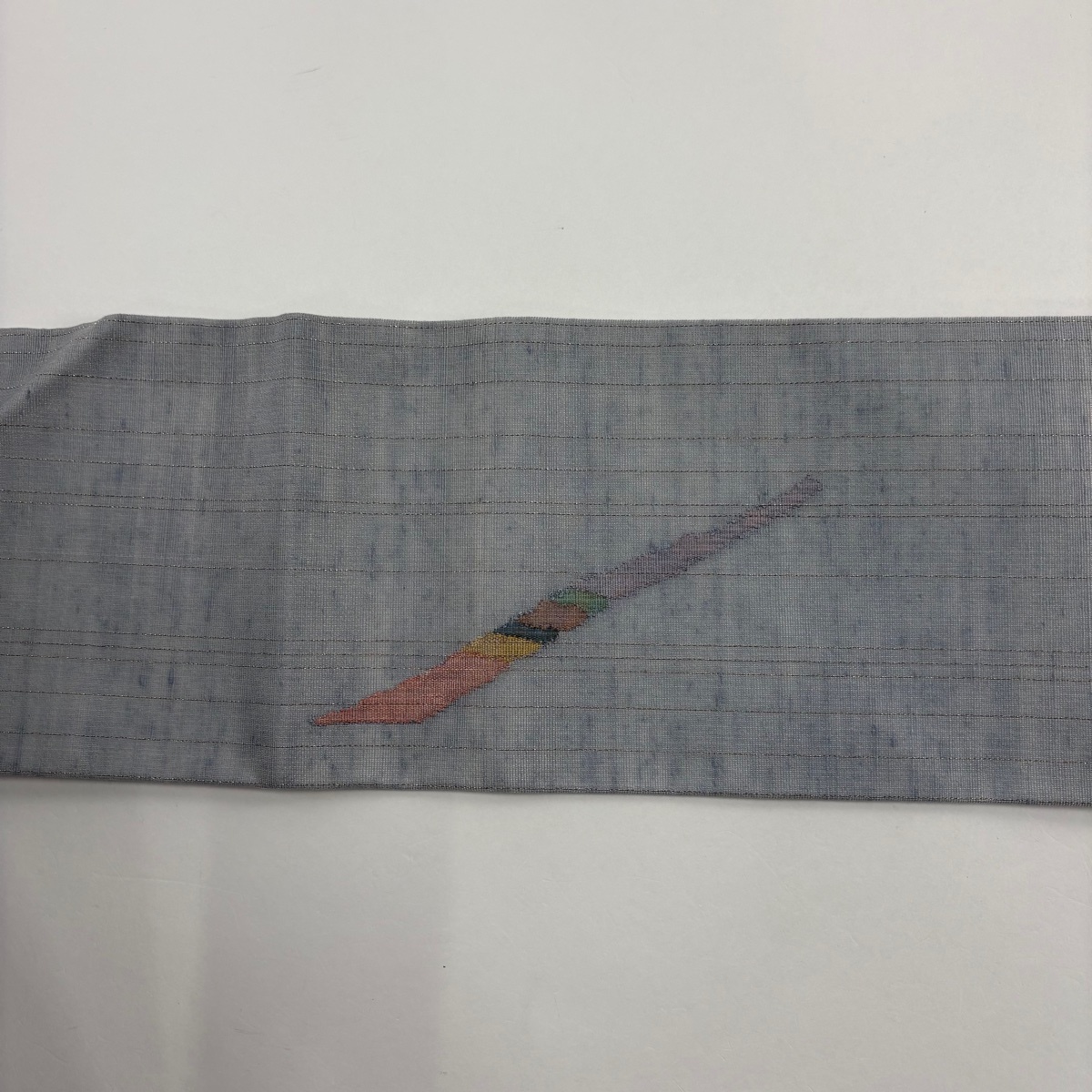 | 名古屋帯 秀品 夏紬地 幾何学 縞 金銀糸 青灰色 正絹 【中古】 |