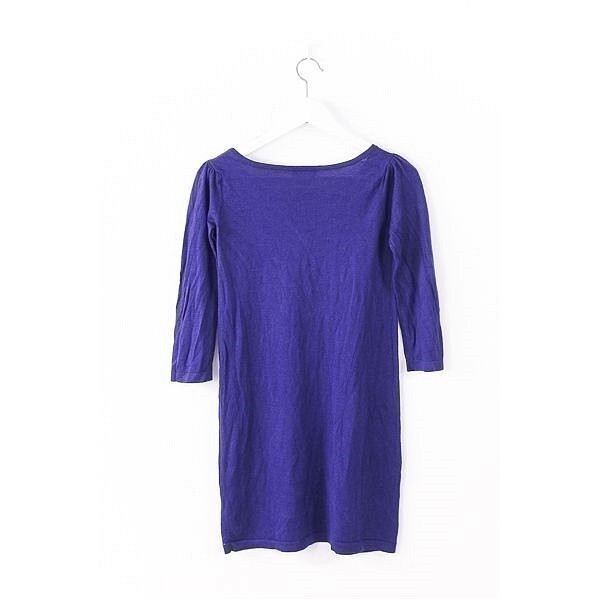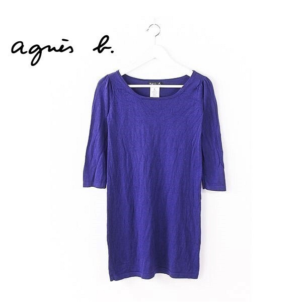 A3437/春夏 agnes b. アニエスベー シルク カシミヤ ウール 無地 半袖 膝丈 ゆったり ニット ワンピース 1 紫/レディース セーター