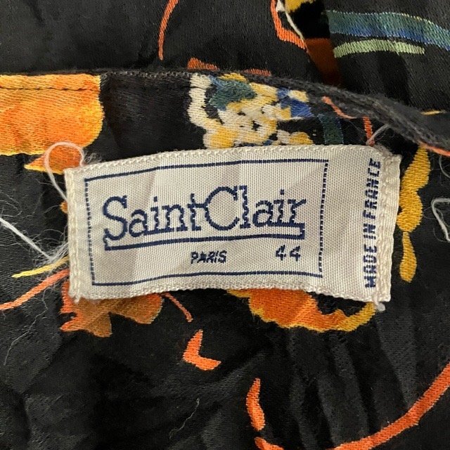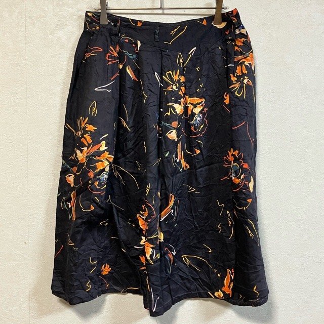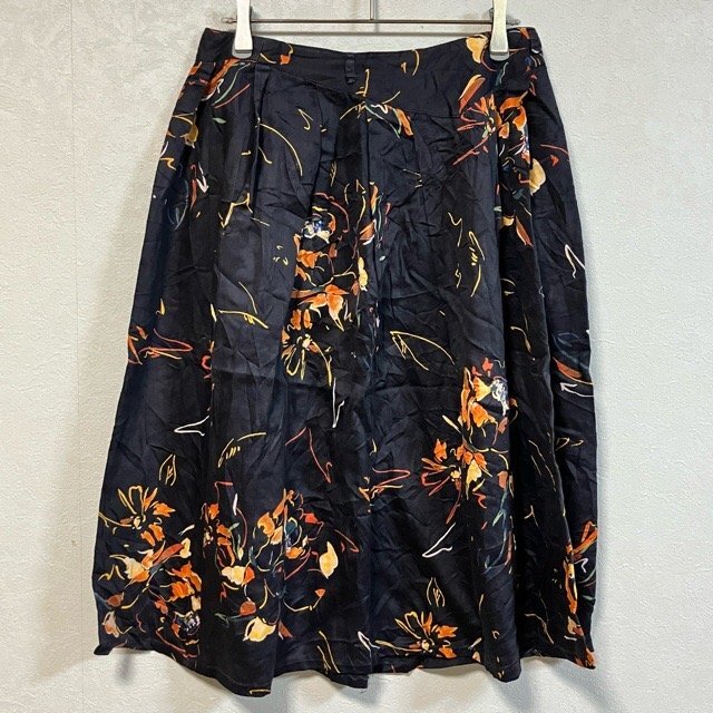 B353 サンクレール 44 ユーロ古着 フランス製 花柄 ポリエステル スカート ネイビー SaintClair レディース