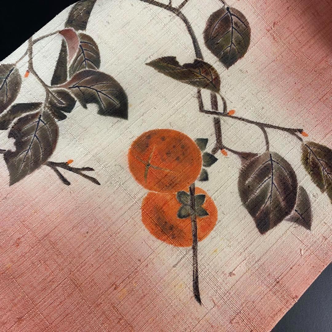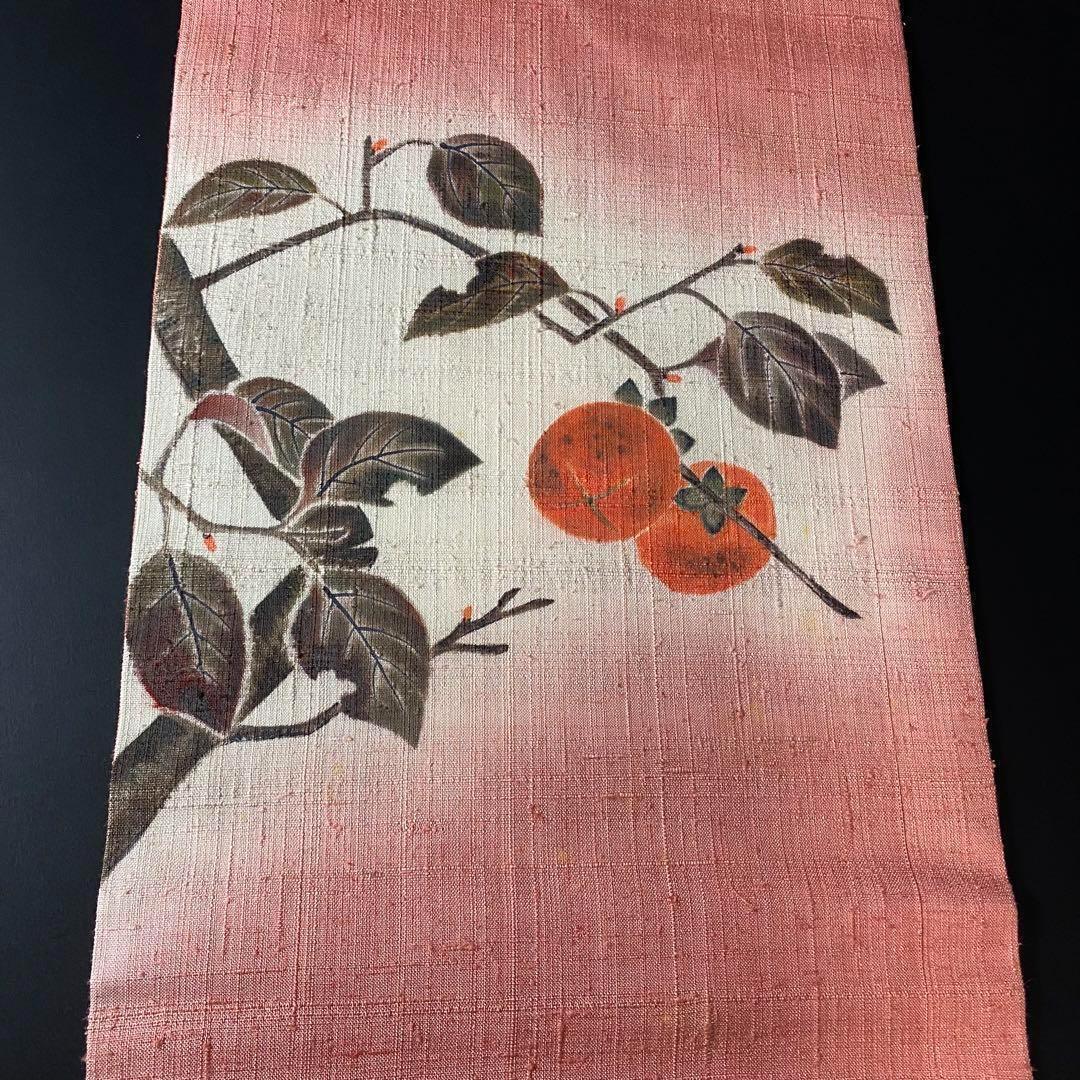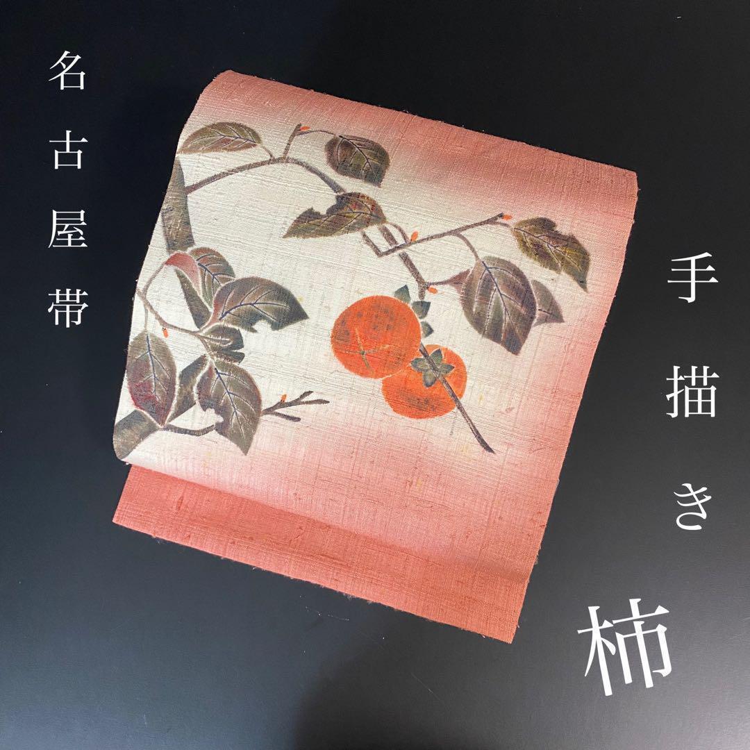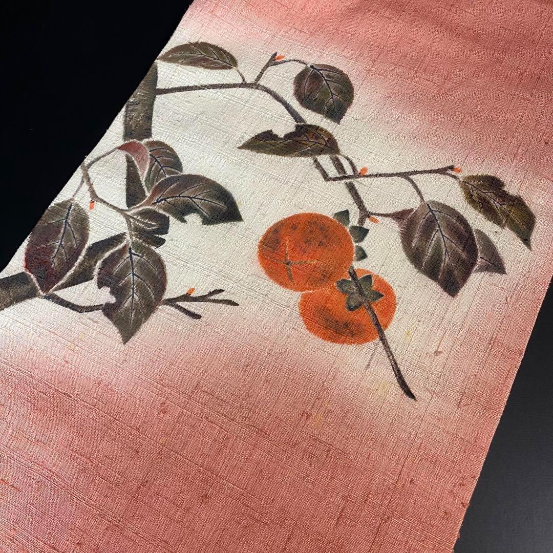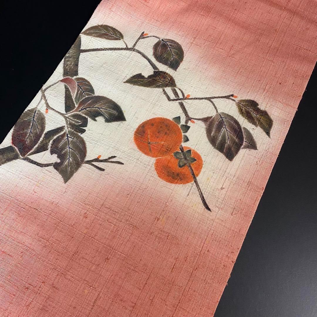 ZY-612 名古屋帯 紬 手描き 柿 ぼかし 成り物 名品 高級