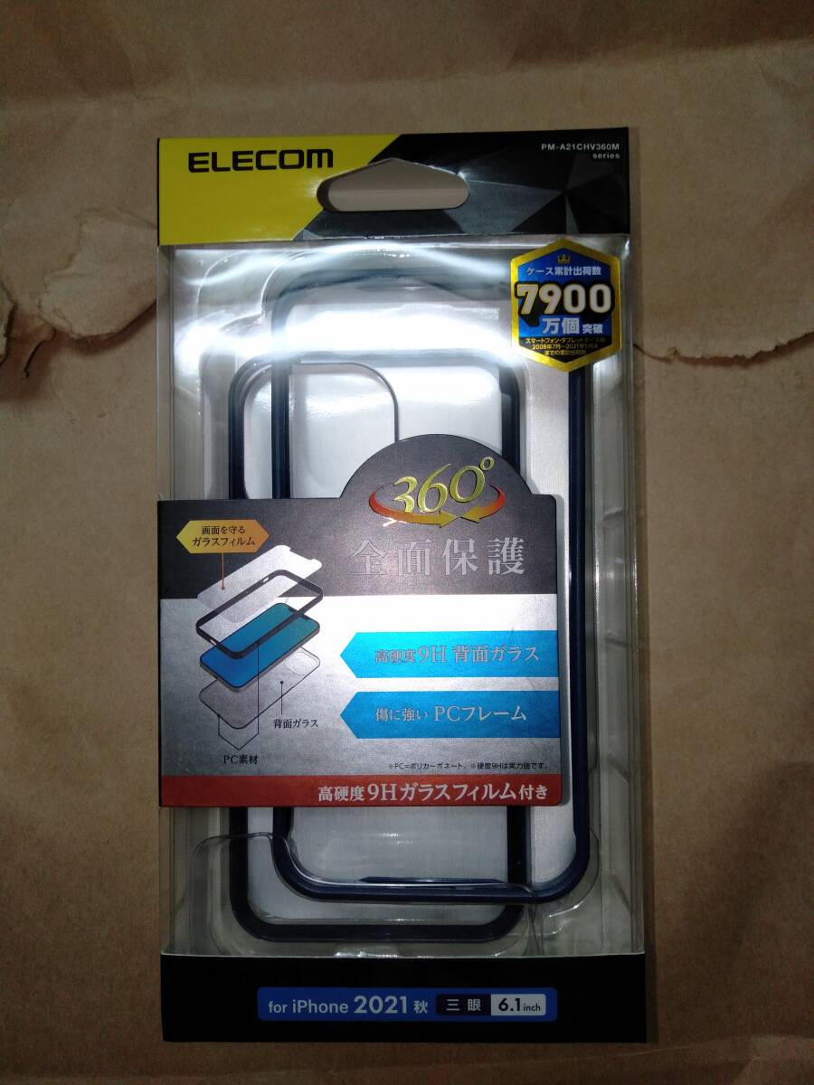 ELECOM iPhone 13 Pro ハイブリッドケース 360度保護 背面ガラス ブルー 前面と背面の強化ガラスと側面の傷に強いポリカーボネート素材