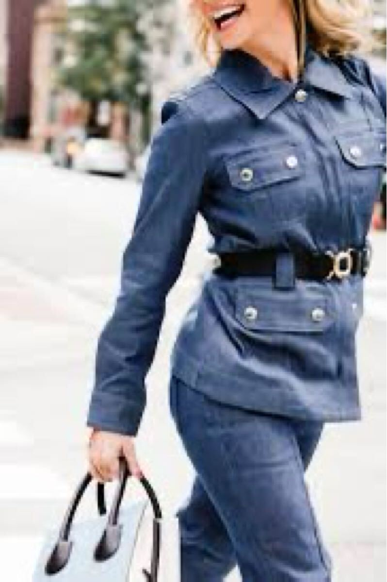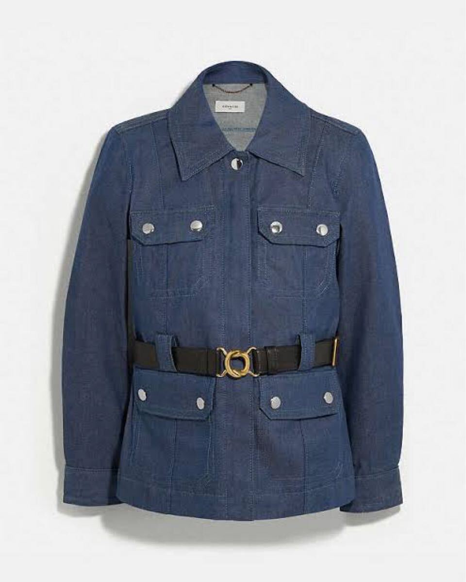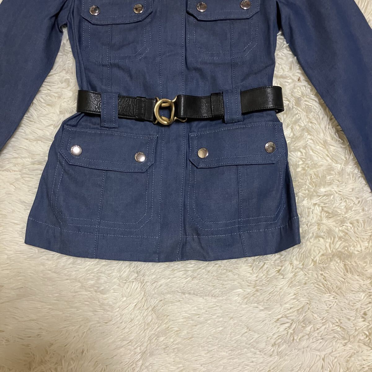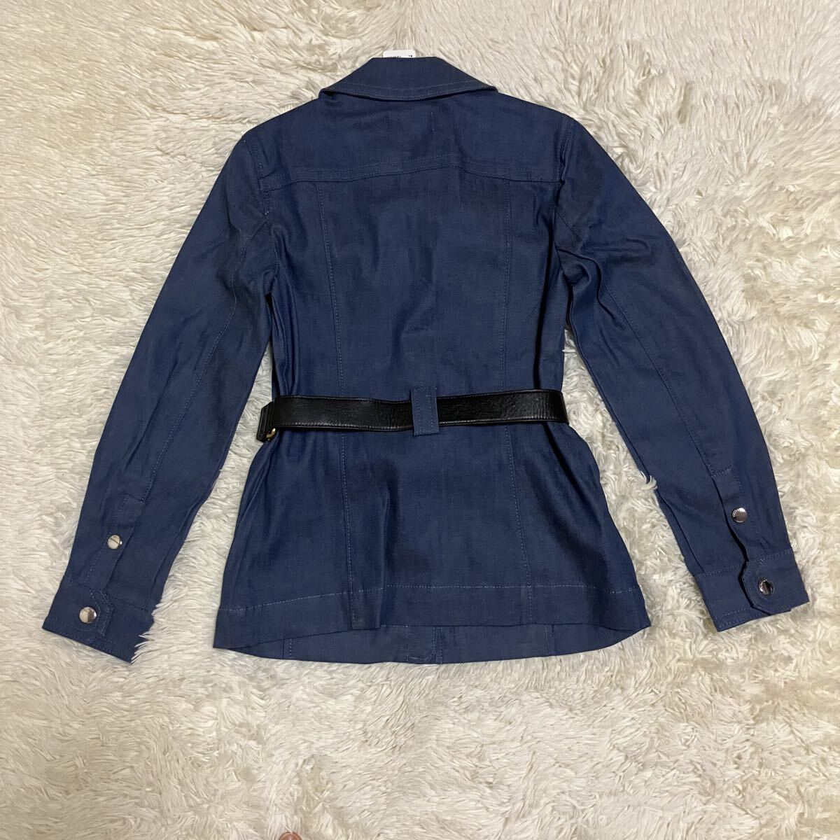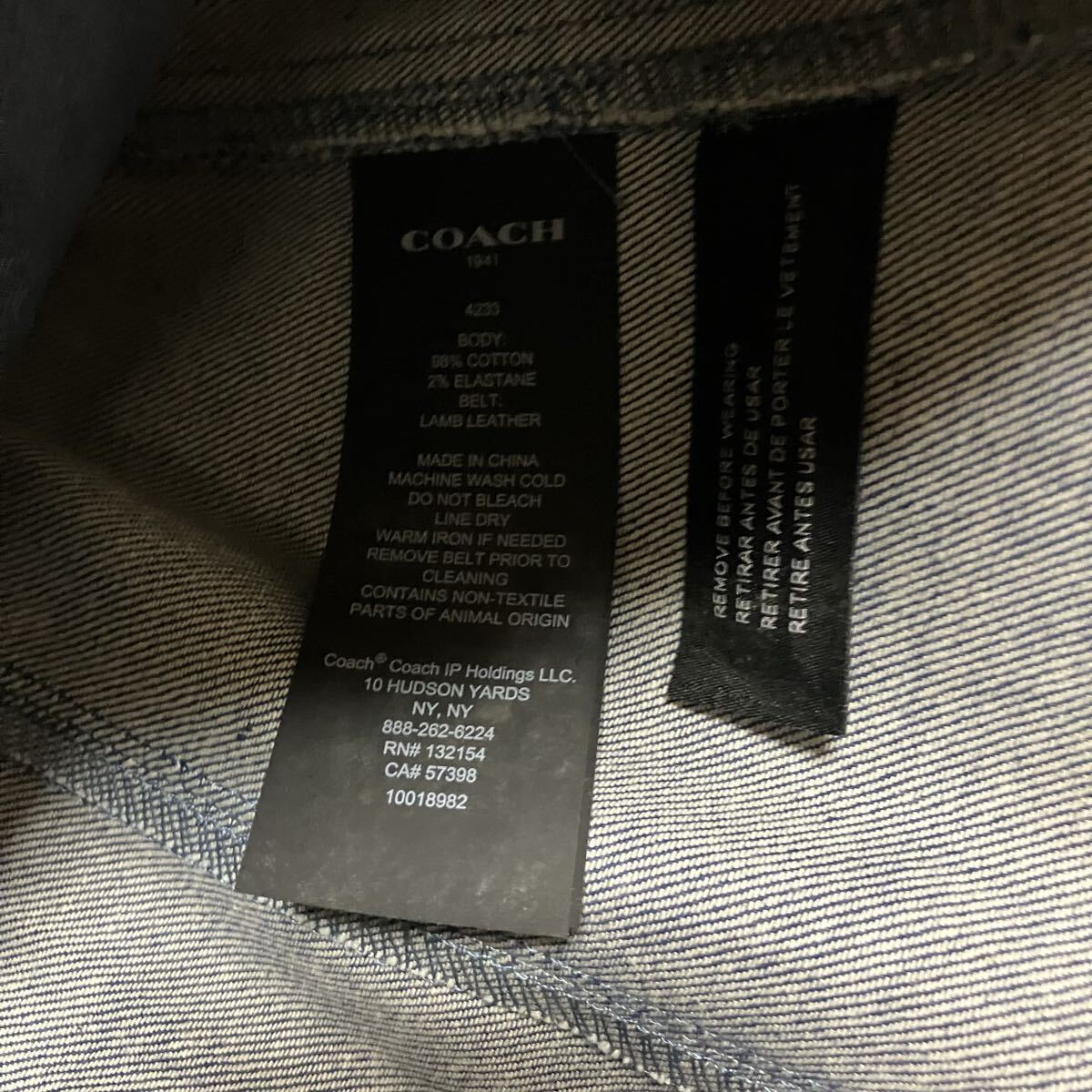 コーチのデニムヘリテージジャケットです。シルエットが綺麗で高級感があります。ベルトも素敵です。保管時の匂いが多少ございますのでご了承下さい。未使用タグ付き品です。