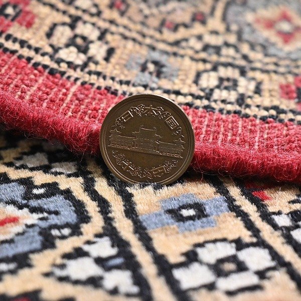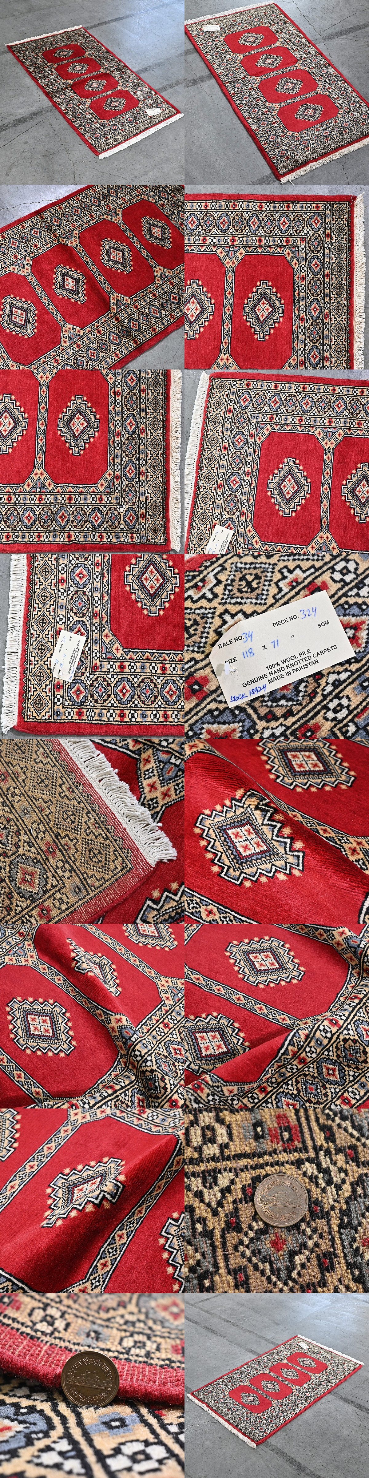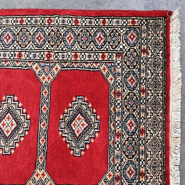 新品 未使用 パキスタン製 手織り ウール絨毯 ラグ ボハラ柄 ギュル文様 ハンドノット 羊毛 カーペット マット ホテル 応接室 P-104