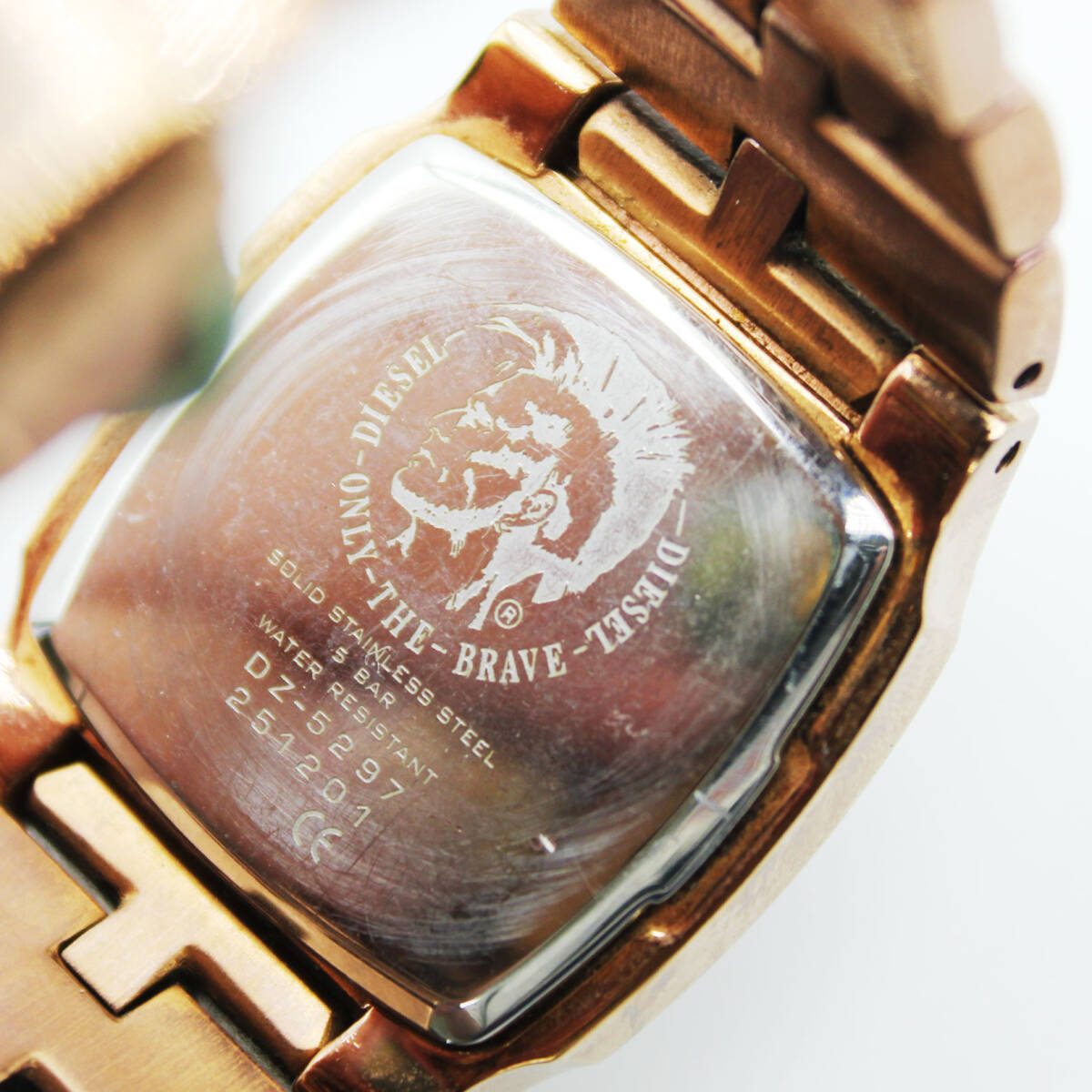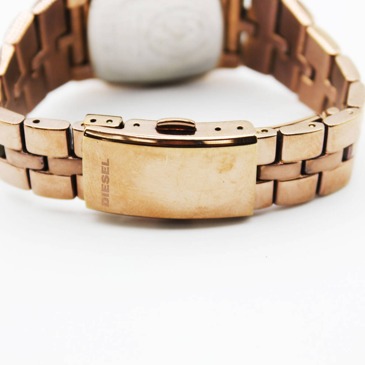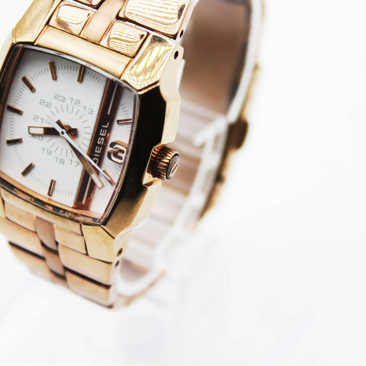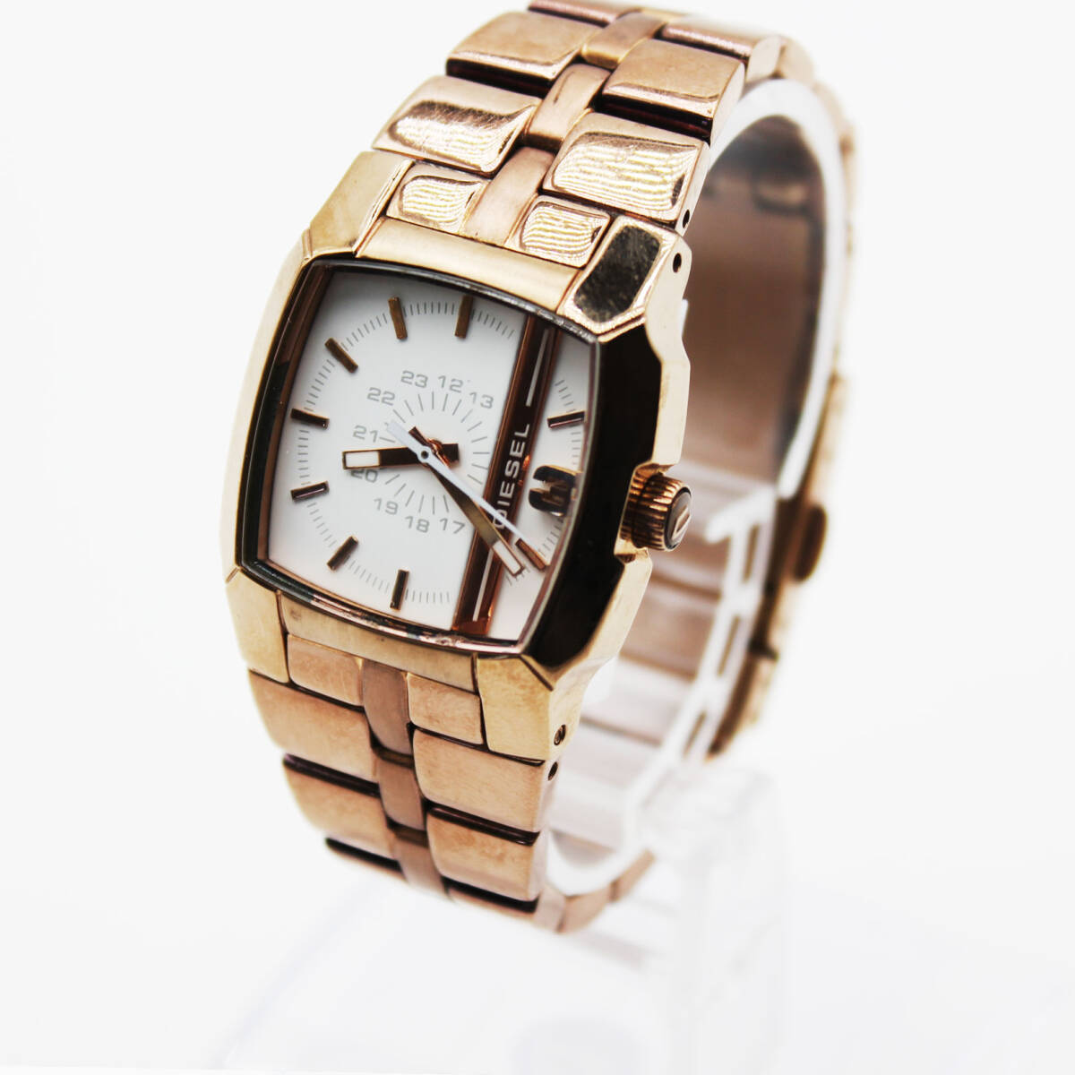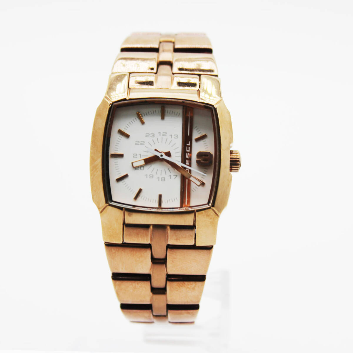 W251015-01 DIESEL ディーゼル DZ-5297 レディース腕時計 クォーツ ジャンク 文字盤ホワイト スクエア ピンクゴールド