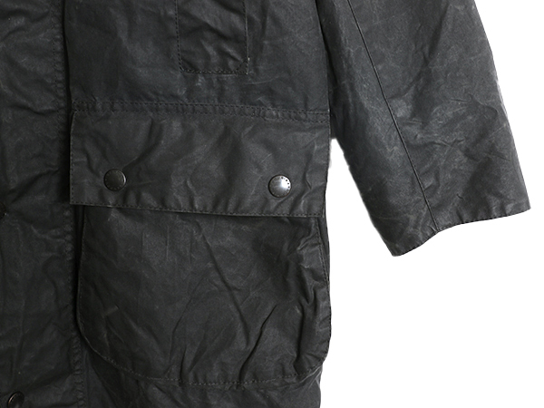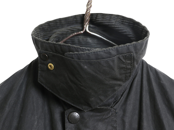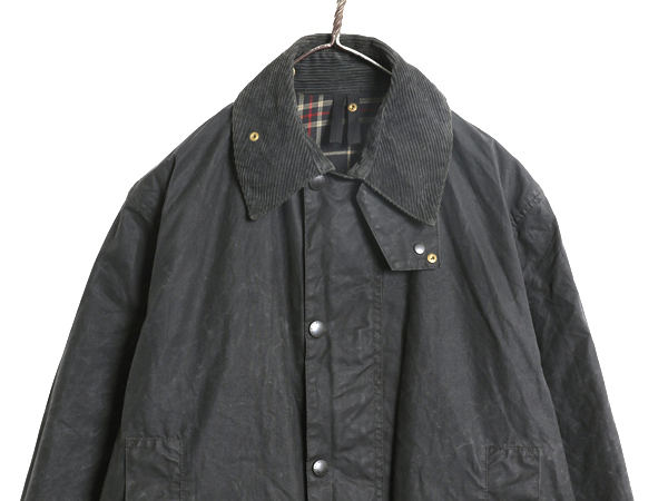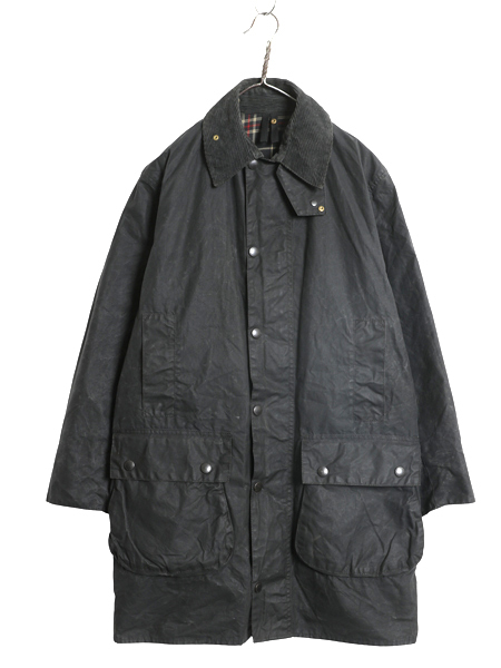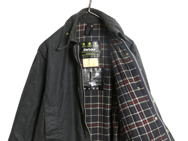 | 商品名 | 90s イギリス製 ★ バブアー ボーダー オイルド ジャケット メンズ S 古着 オールド 3ワラント ハーフ コート ハンティング アウトドア 紺 |