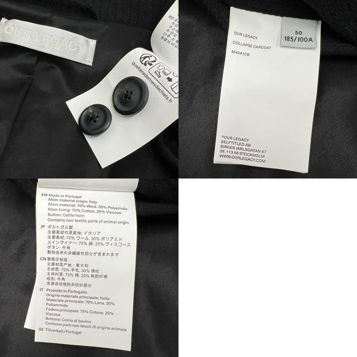 | Our Legacy アワーレガシー Collapse Car Coat ト 50 XL 185/100A ブラック ロングコー メンズ |