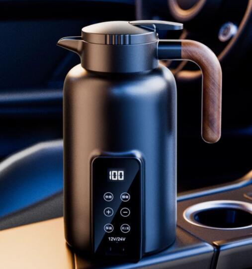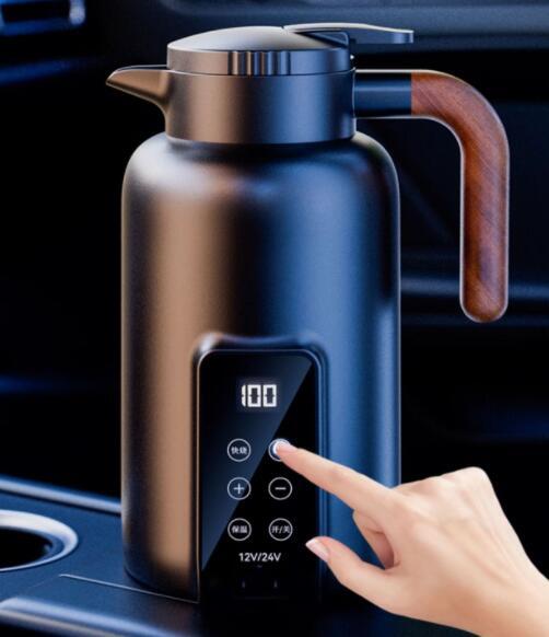 人気車載電気ポット 電気ケトル 温度調節 急速車用湯沸し器 カーヒーター ヒーティング 1300ml 360° 循環急速加熱 25℃~100℃ DC12V/24V