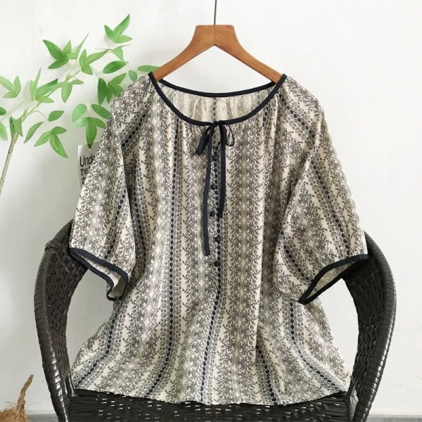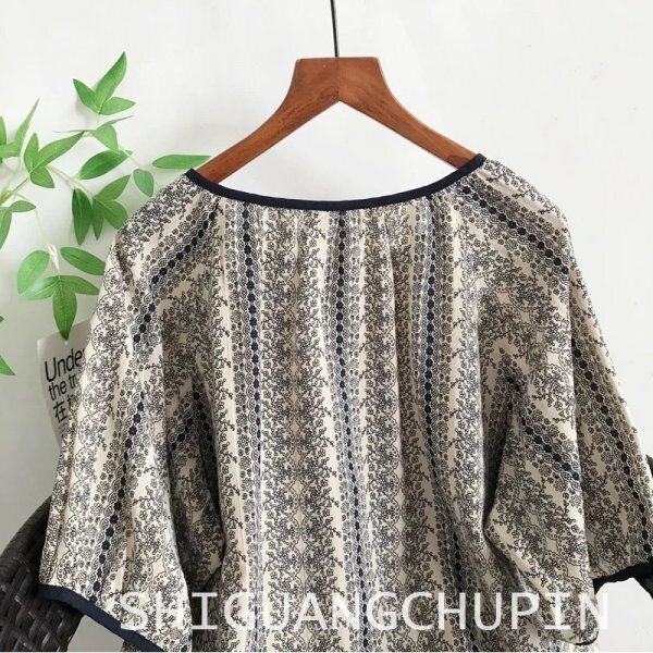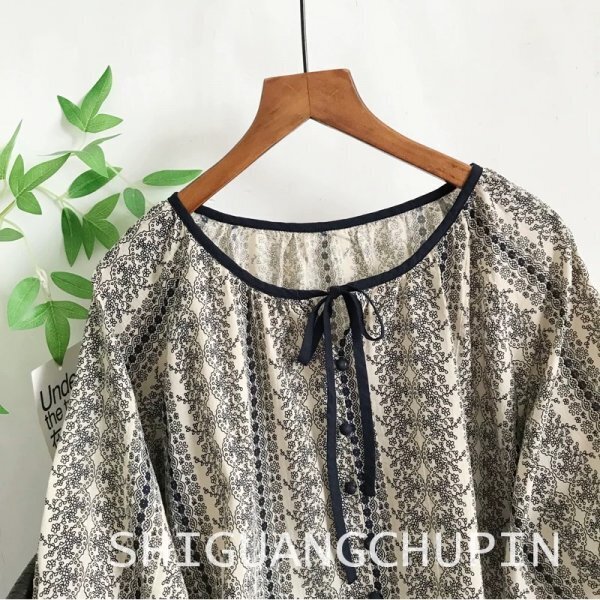 yhチュニック トップス ワイシャツ ゆったり フリーサイズ 綿100% 大人可愛 ナチュラル 通気性肌触り抜群 花柄1
