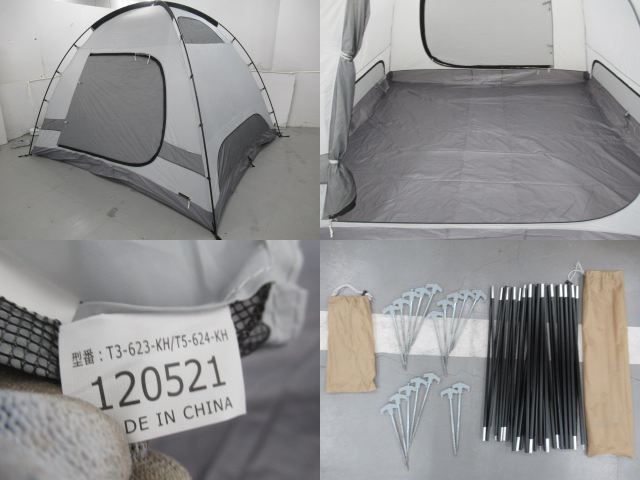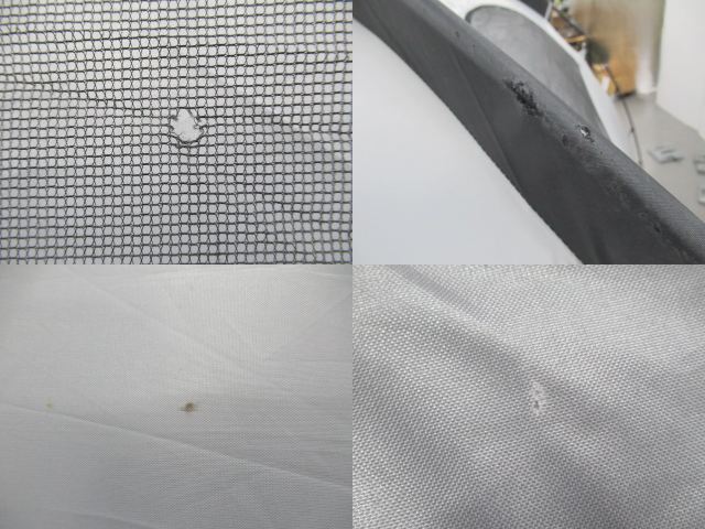 ポールスリーブに破れ箇所あり・後方メッシュ部分に破れ箇所あり・軽微な汚れあり・床面にコーティング剥がれ箇所あり