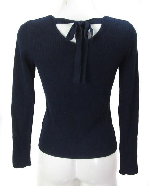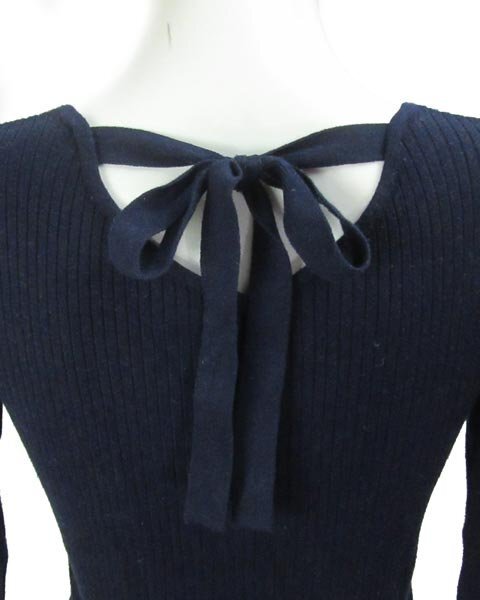 コメント | 後ろリボンのフェミニンなニット。 甘目スカート、キレイ目パンツなど幅広く コーディネートして頂けます。 紺なので、ボトムスのお色を選ばずあわせて頂けます。 |
