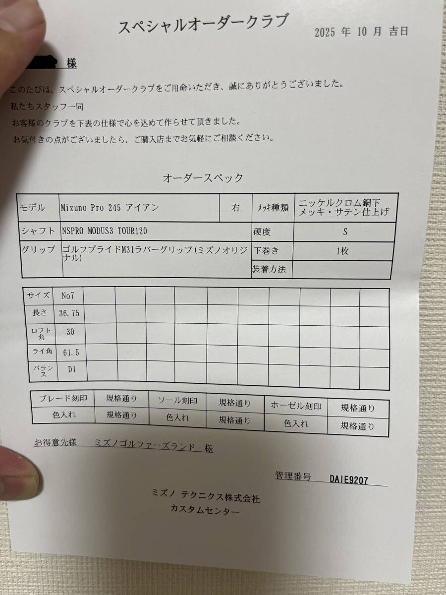 ミズノプロ 245アイアン 7番単品