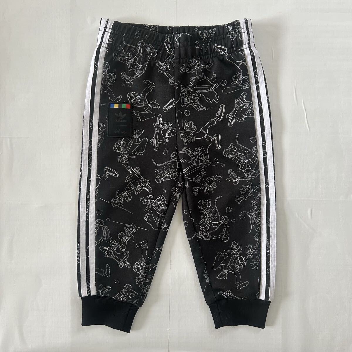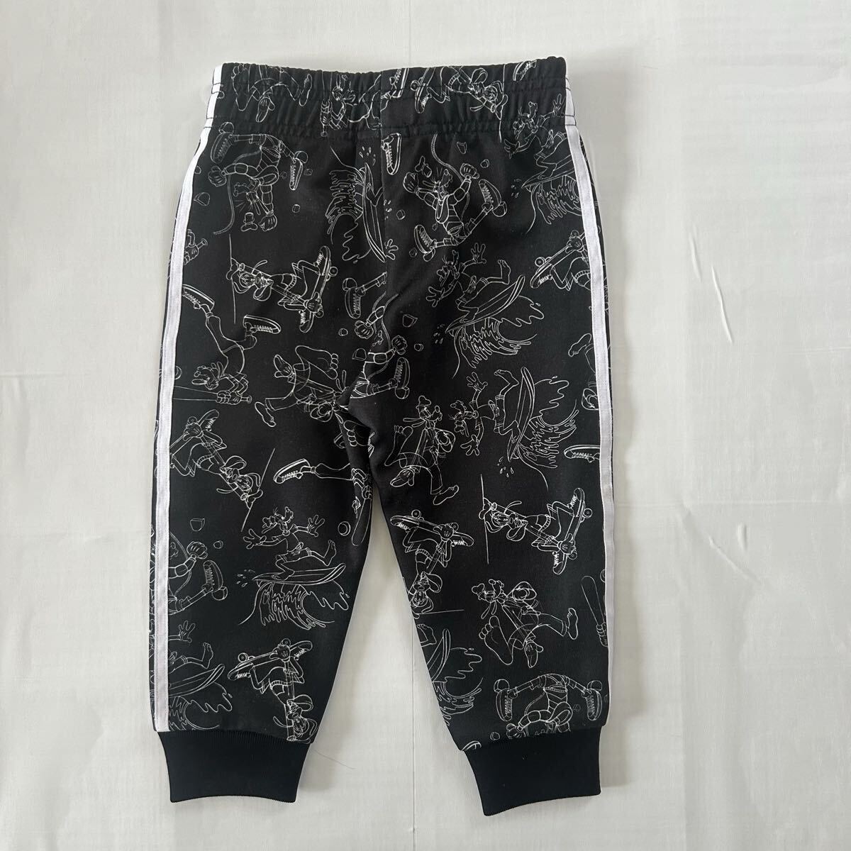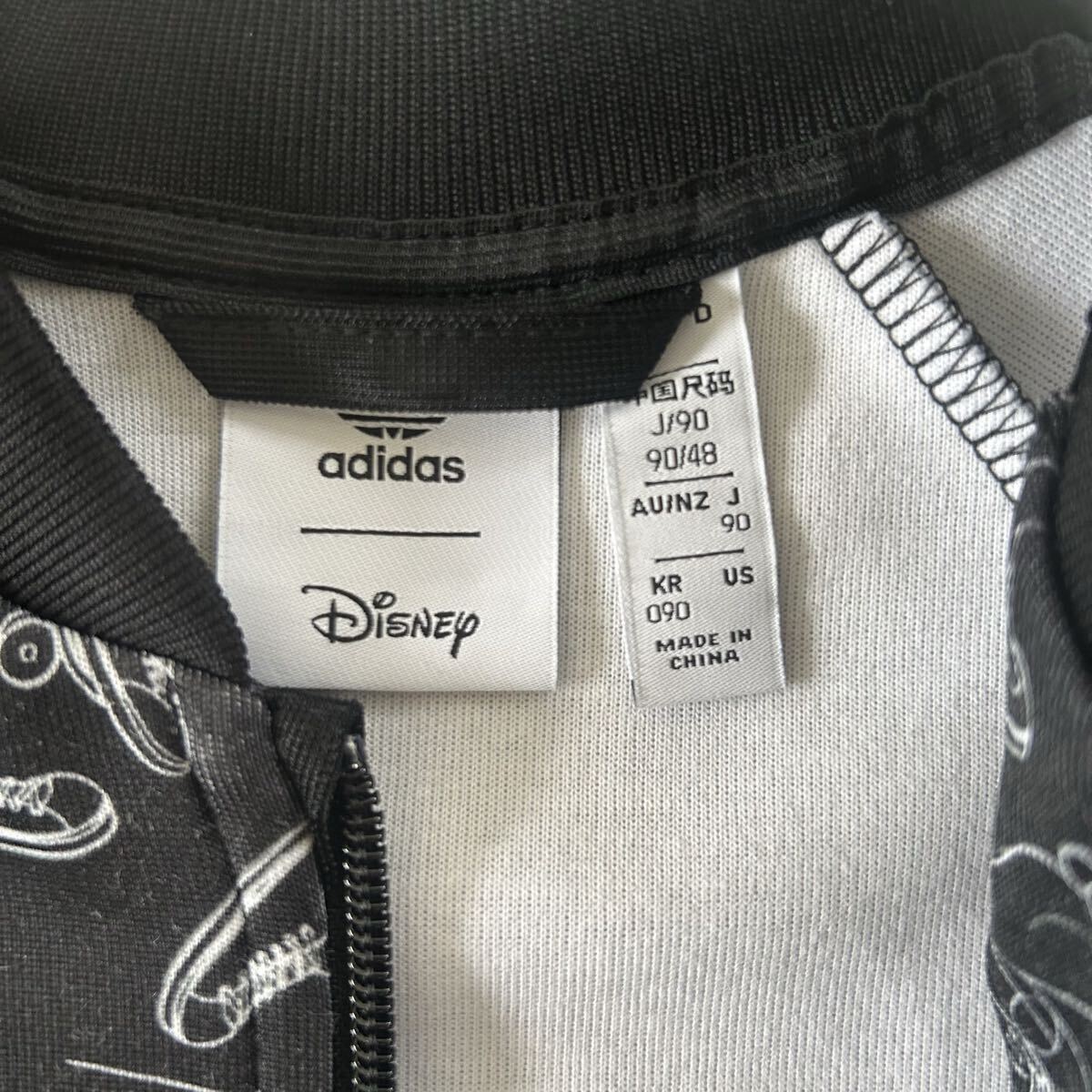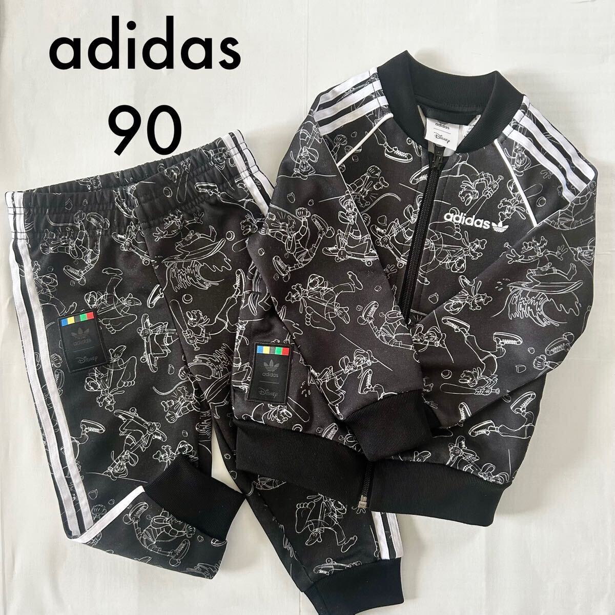 ディズニーキャラクターのデザインが施されたadidasの90サイズジャージセット、ブラック。