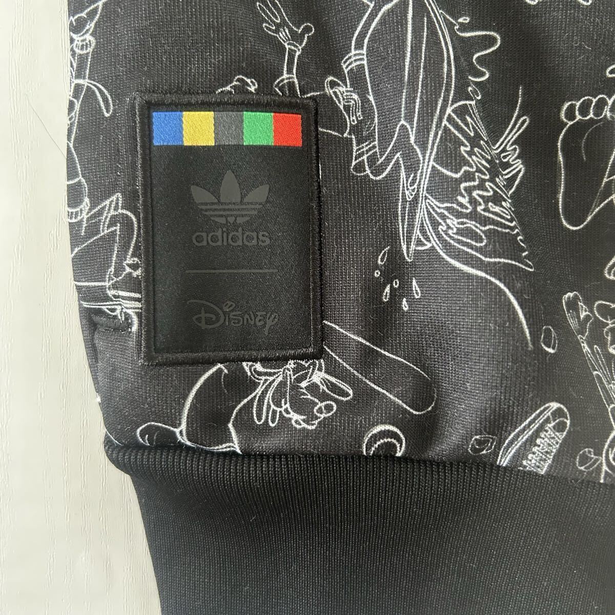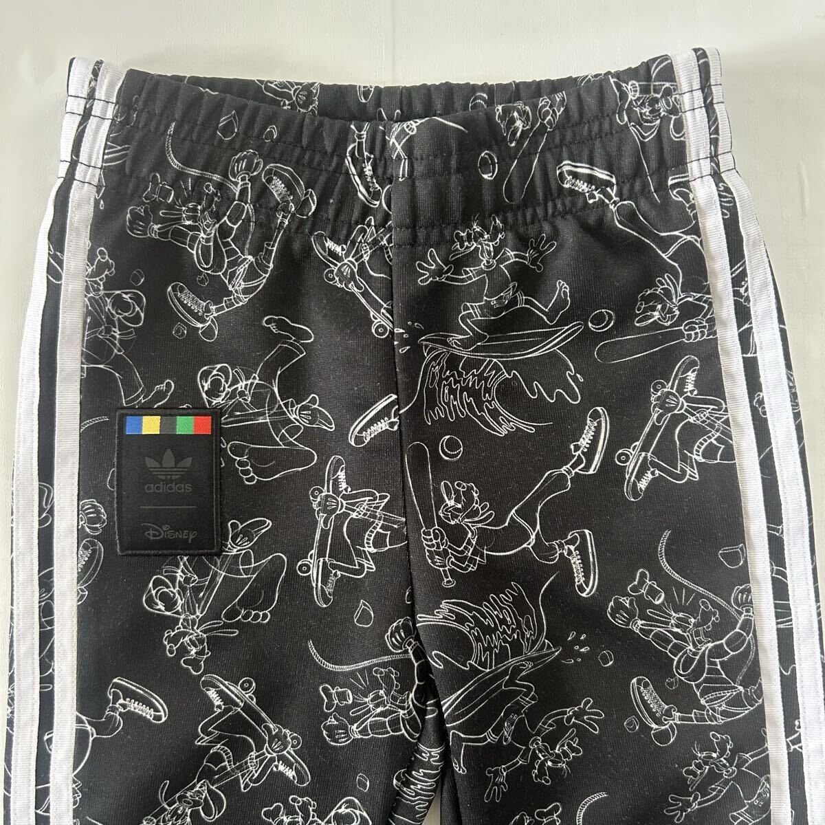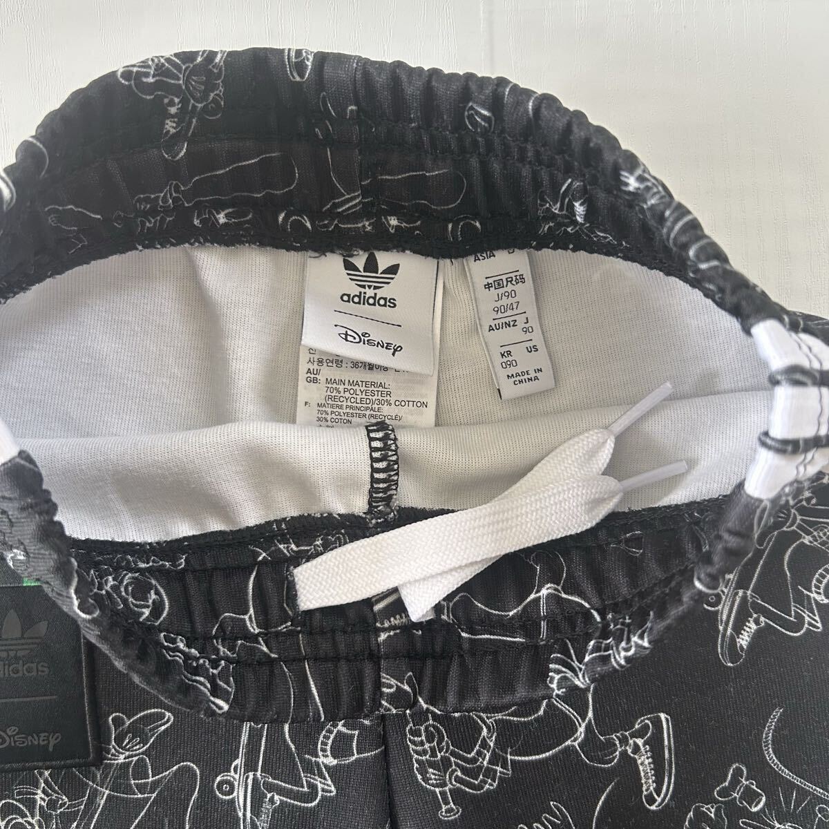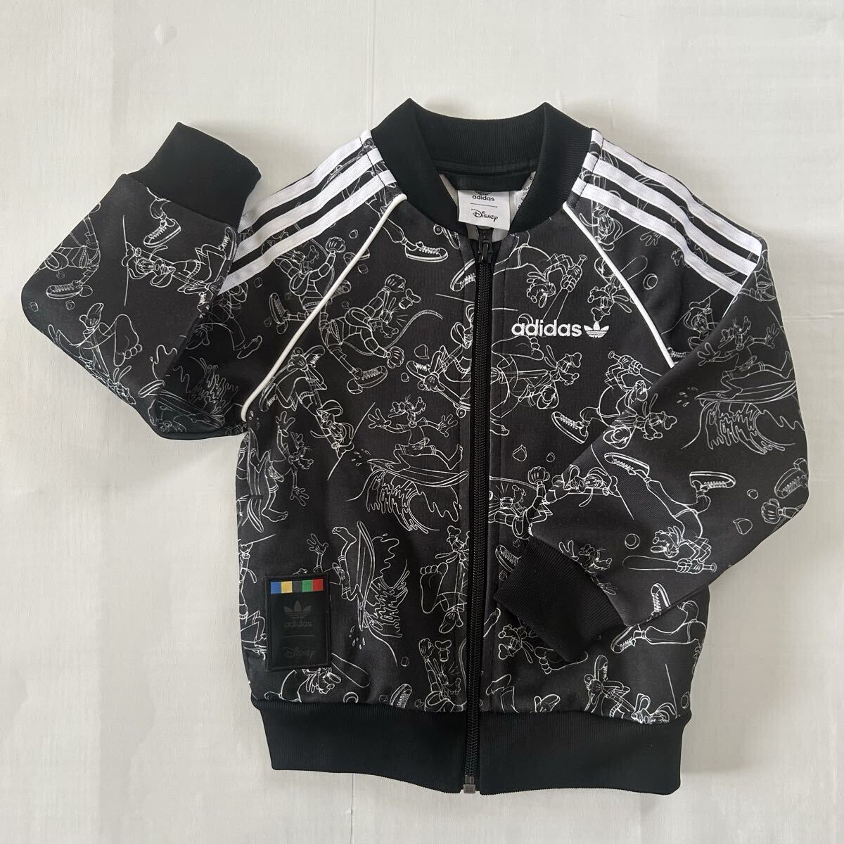 ディズニーキャラクターのデザインが施されたadidasの90サイズジャージセット、ブラック。