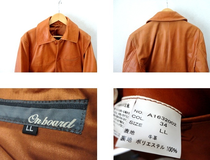 上質 牛革■On Board■カウレザー カーコート/オールレザー ハーフコート■ブラウン■XLsize■ライダース スポーツジャケット