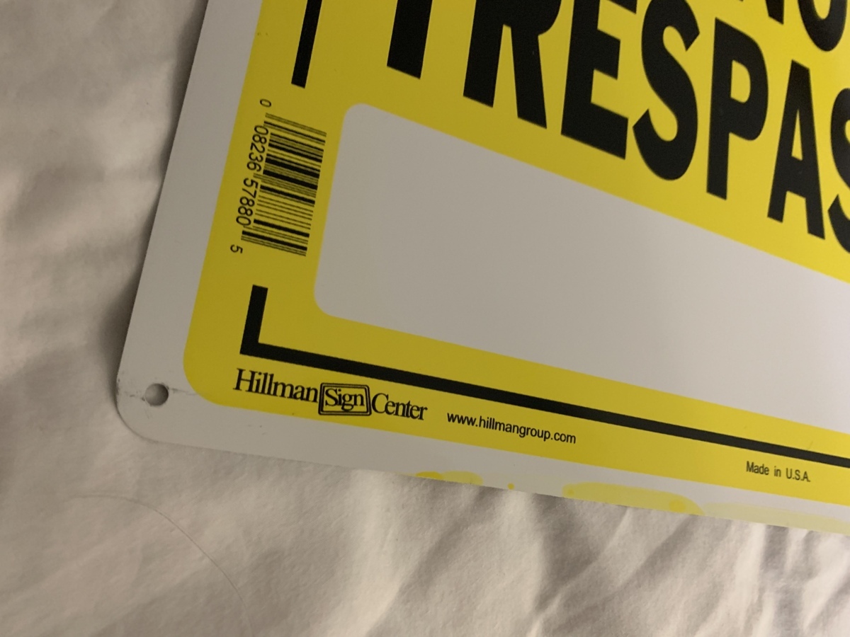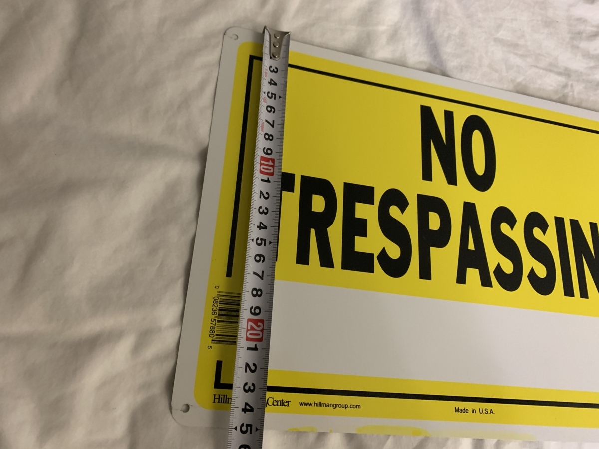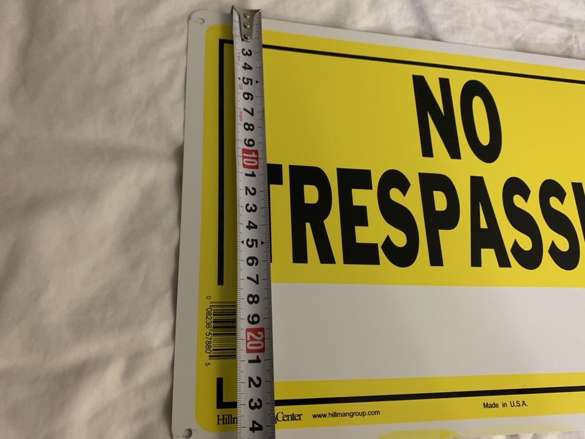 アメリカにて購入しましたアルミ製屋外使用可能な立ち入り禁止看板です。