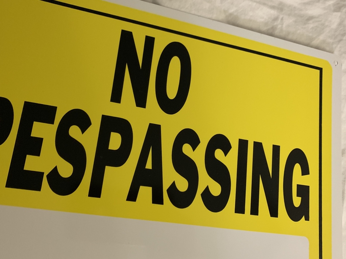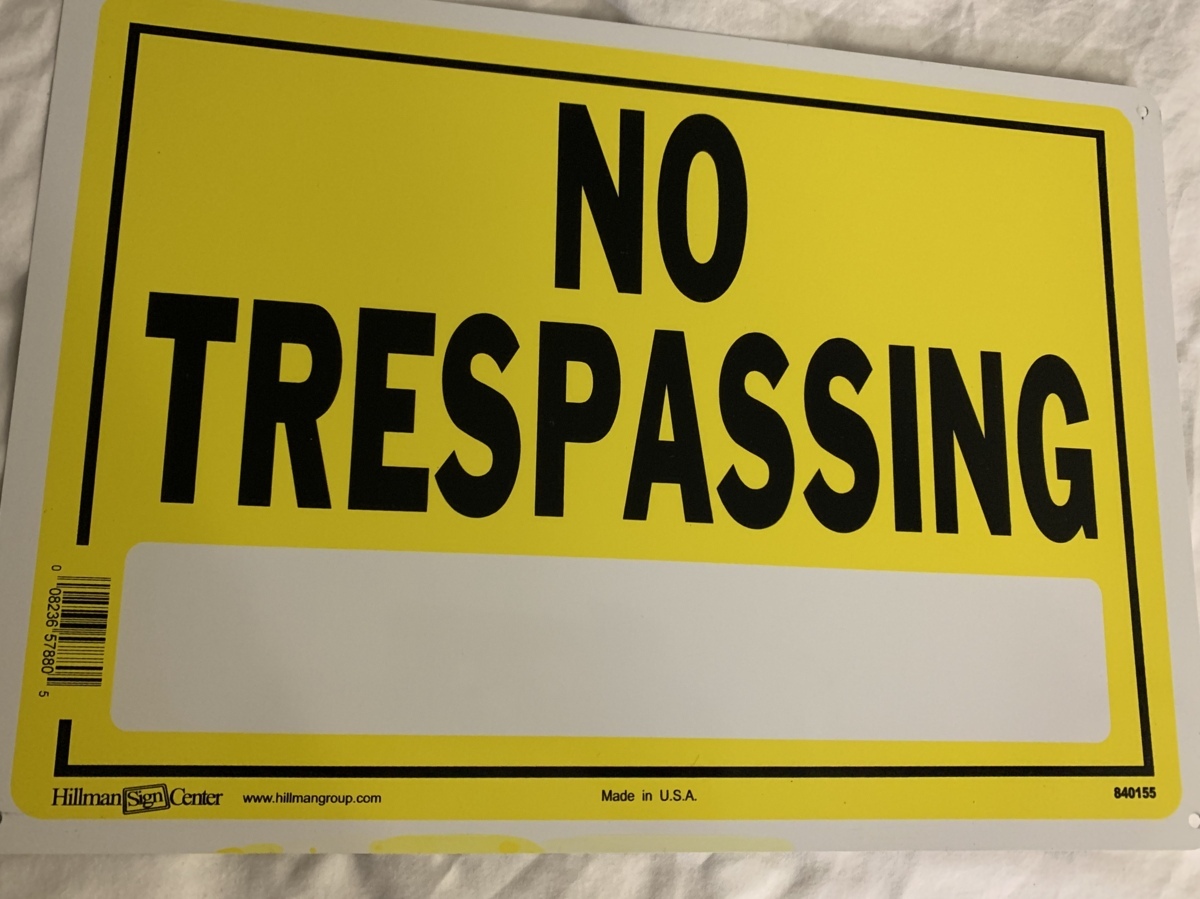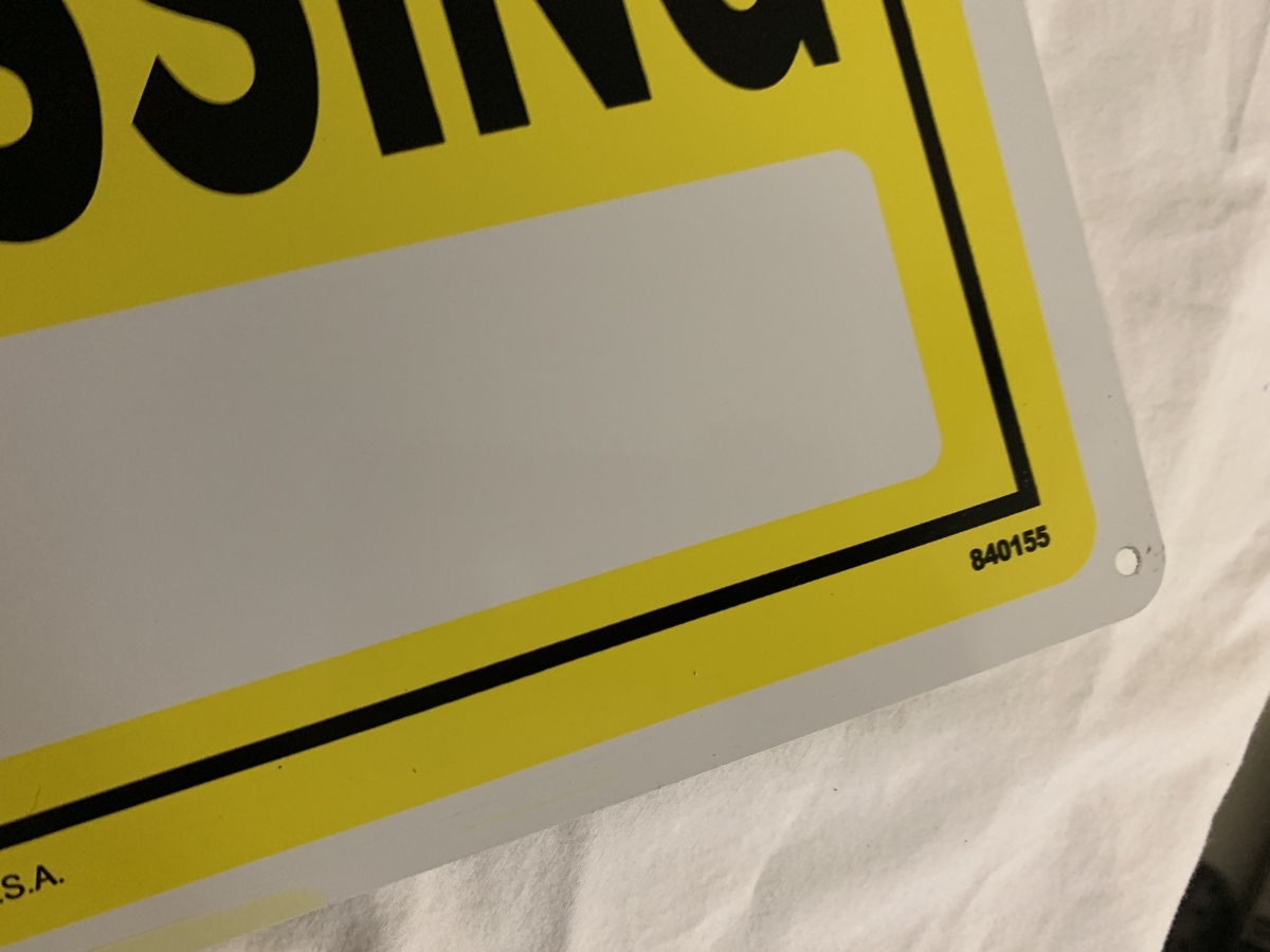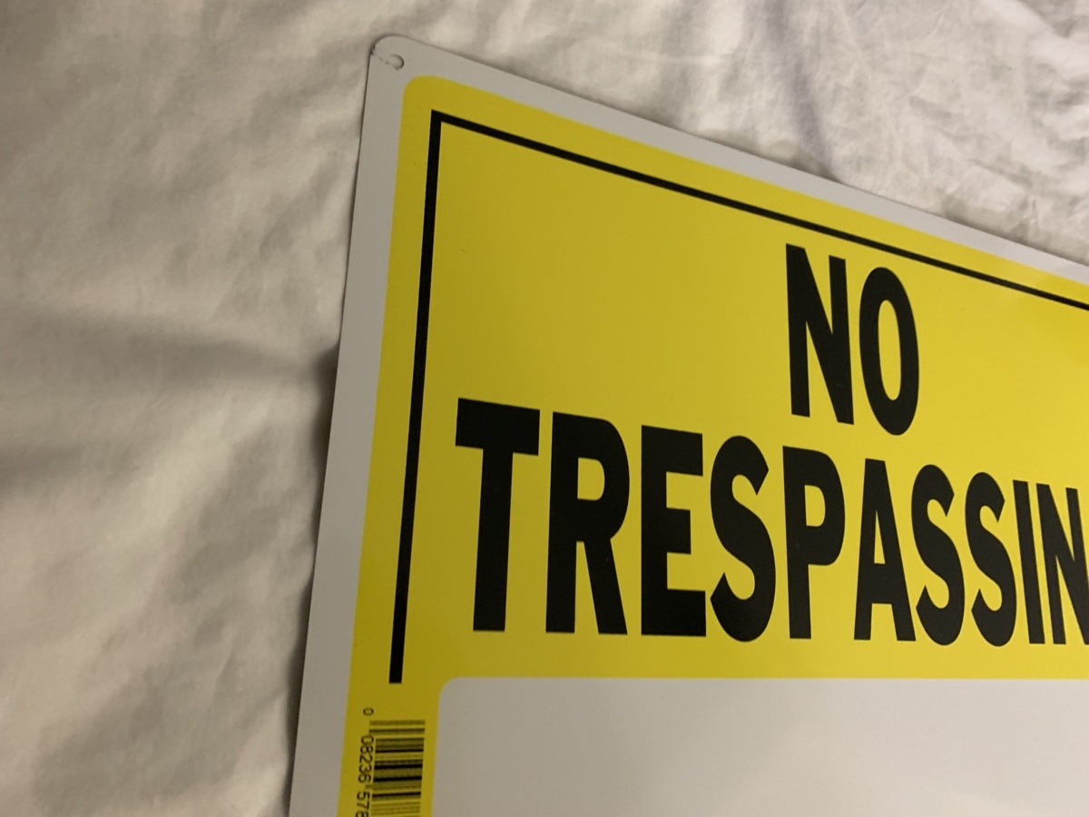 アメリカにて購入しましたアルミ製屋外使用可能な立ち入り禁止看板です。