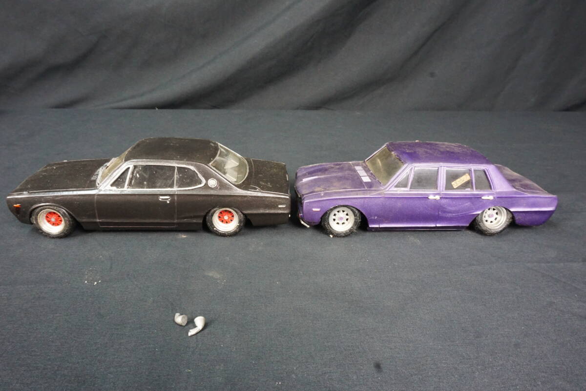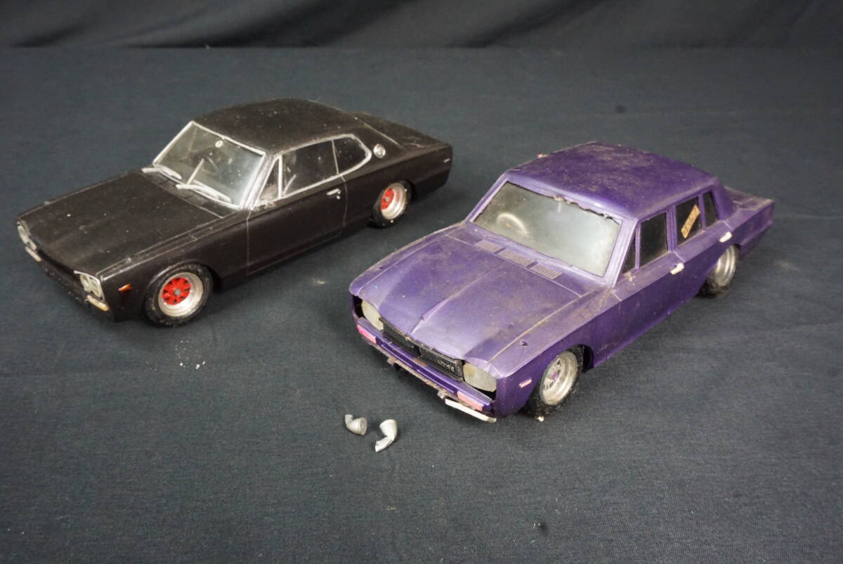 ジャンク 1/24 ニッサン スカイライン ハコスカ 組み立て済 プラモデル 2台 破損・改造あり シャコタン 街道レーサー グラチャン