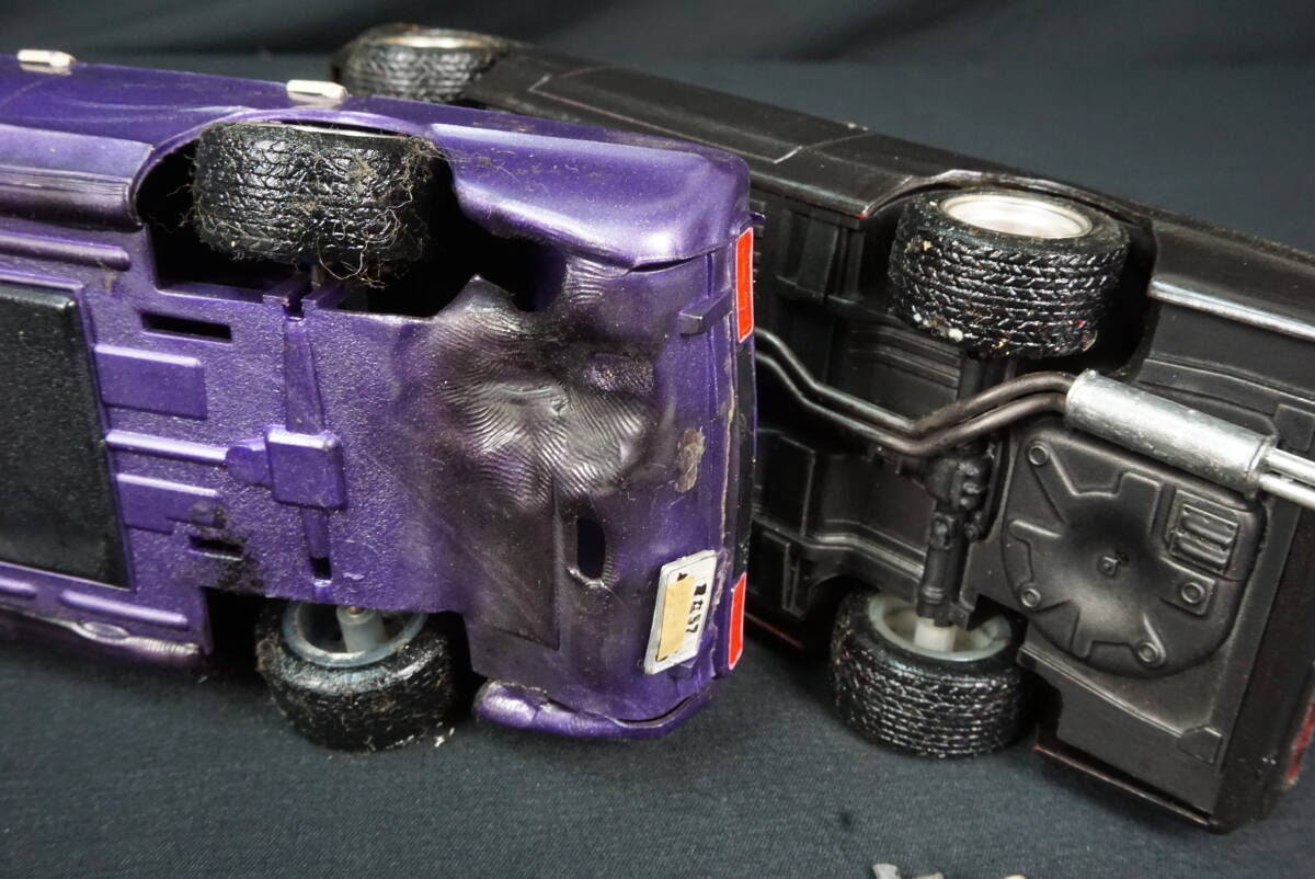 シャコタンにしてあります。改造、加工してある箇所がいろいろありそうです。部品の破損や欠品があります。タイヤが経年変化でべたついています。外れた部品は画像の物が残っております。