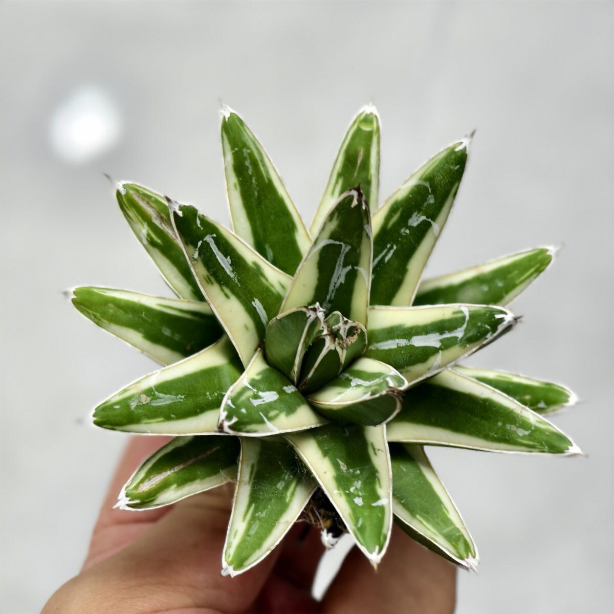 ■梱包等には十分注意しますが輸送中の葉・鋸歯折れ等が生じた場合免責とさせていただきます。(十分注意を払いますが子株の鋸歯は大変折れやすく、また育成においても大きな障害にはなりませんので特に鋸歯折れはご容赦願います。)