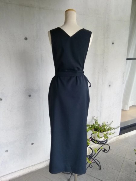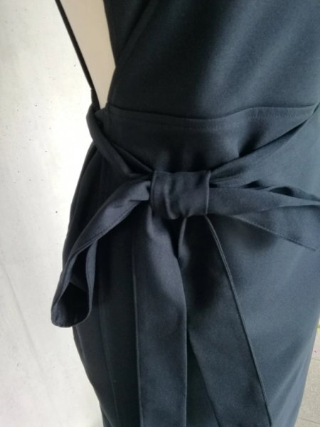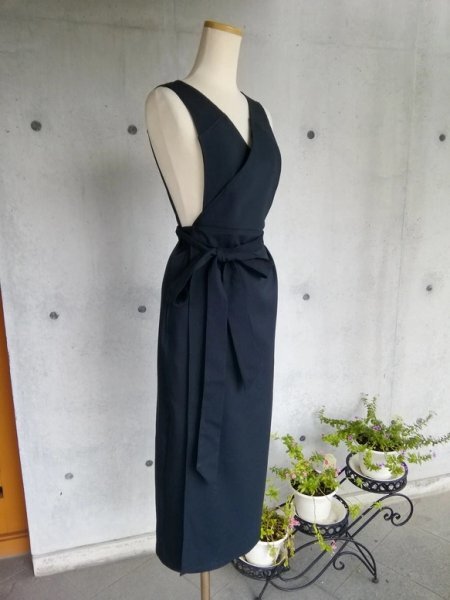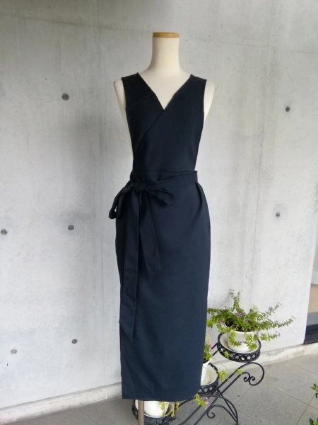 茶道お稽古用エプロンにもなる着やすい、羽織って着るタイプのロングエプロン、ウエストリボン付きで出来上がりました。ストレッチ入りの素材でより着やすくなりました。
