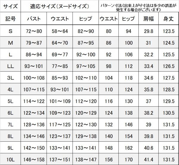 サイズ表をご参考ください。