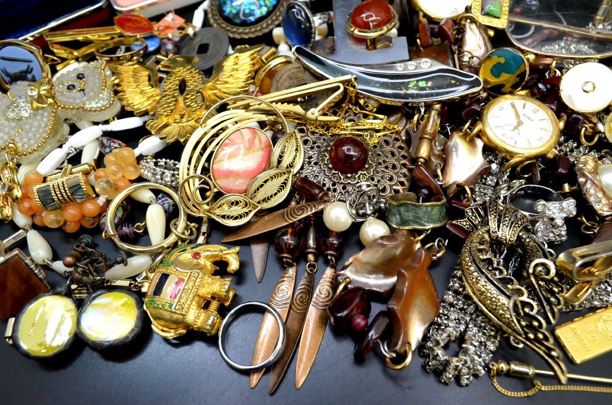 【商品名、メーカー(ブランド)名、型番、シリアル、サイズ】アクセサリー 雑貨他まとめ【商品について】中古品です。通常使用できるお品からジャンク品まで、状態は様々です。 金プラチナ製品ではありません。イミテーションが多く含まれます。 色のくすみ、さび、変色、石取れ、破損品等も含まれています。 詳細は恐れ入りますが画像をご確認頂き、入札をお願い致します。 【付属品】画像の通りです【状態ランク・商品状態】※当店査定基準参考下さい。A~Dランク ご不明な点等がございましたらお問い合わせの後入札お願いします。 落札後のお問い合わせはお受けできませんので、ご遠慮願います。 【送料について】 |