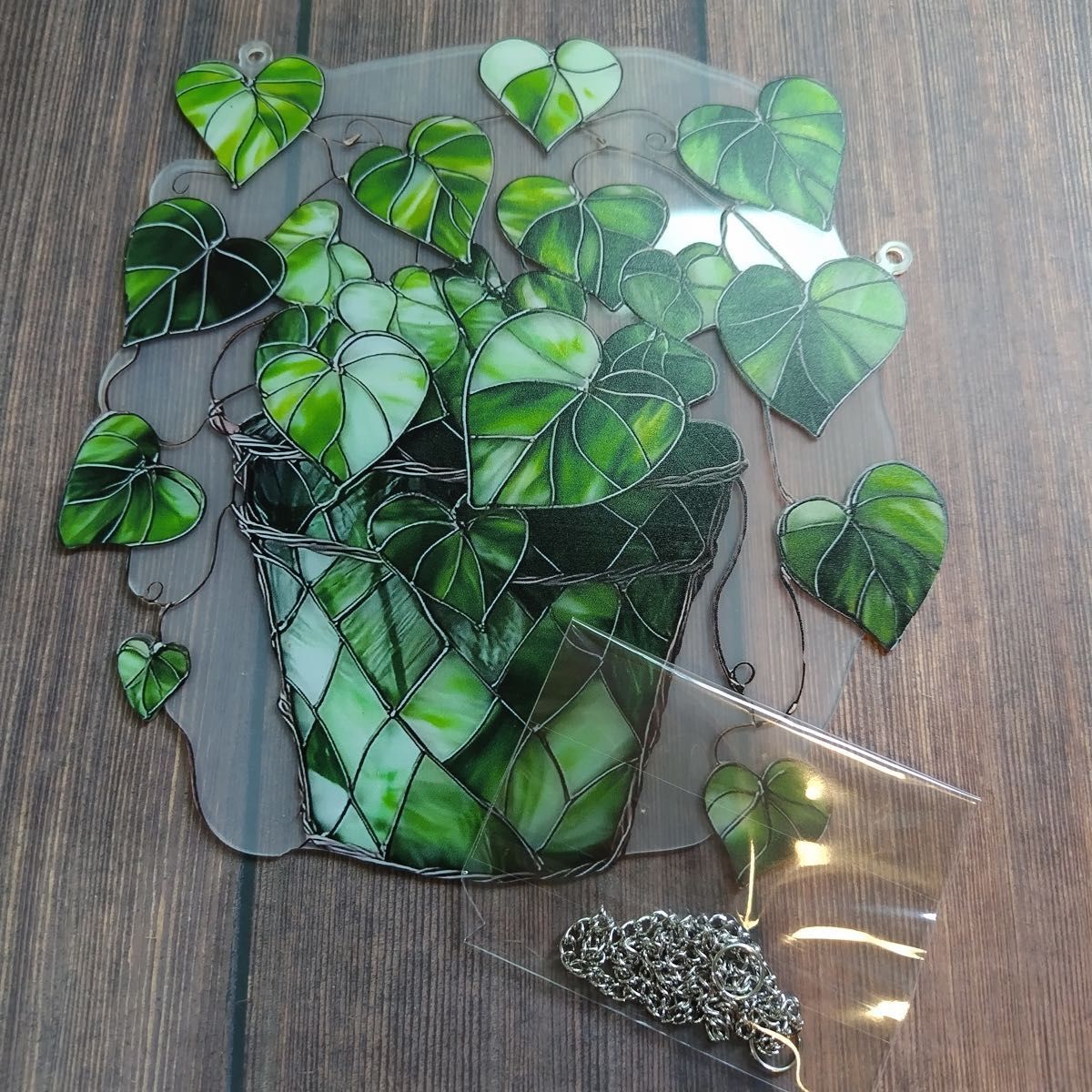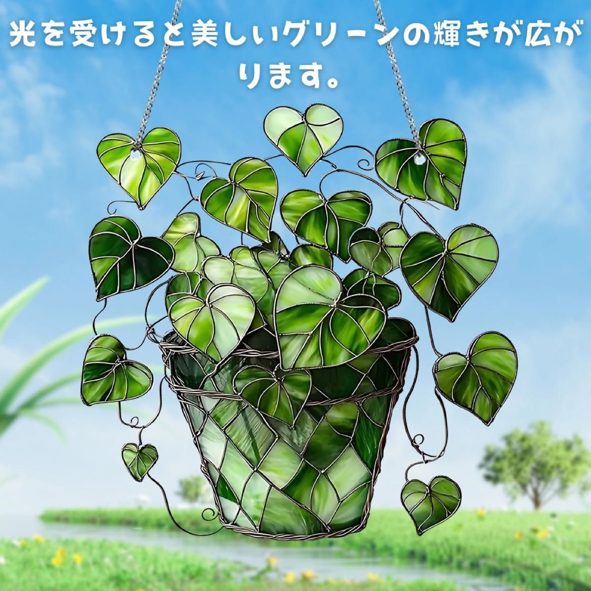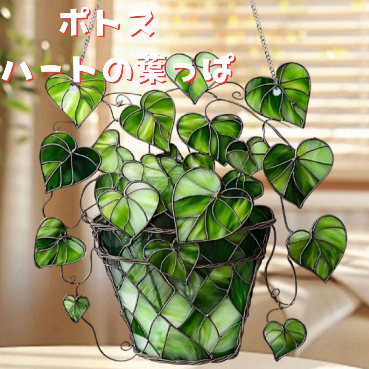 ハート型の葉が可愛らしい、ポトスモチーフのサンキャッチャーです。