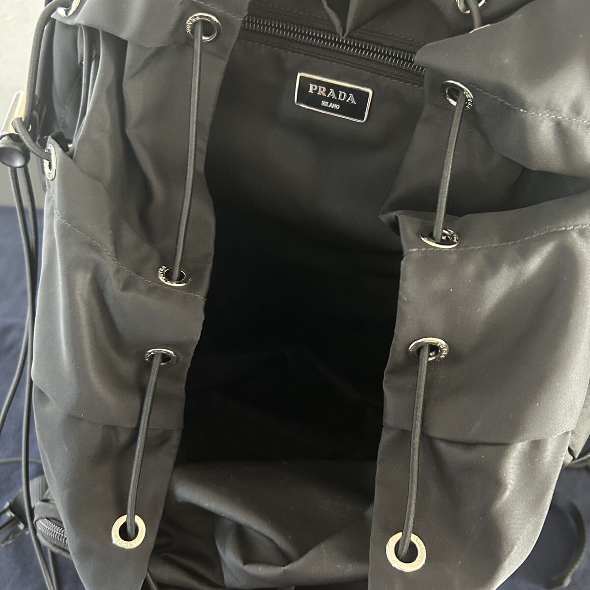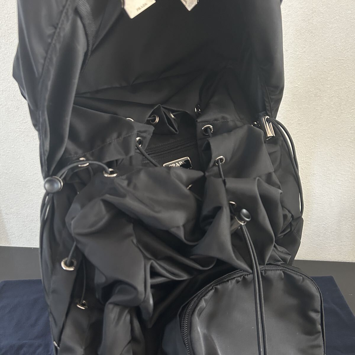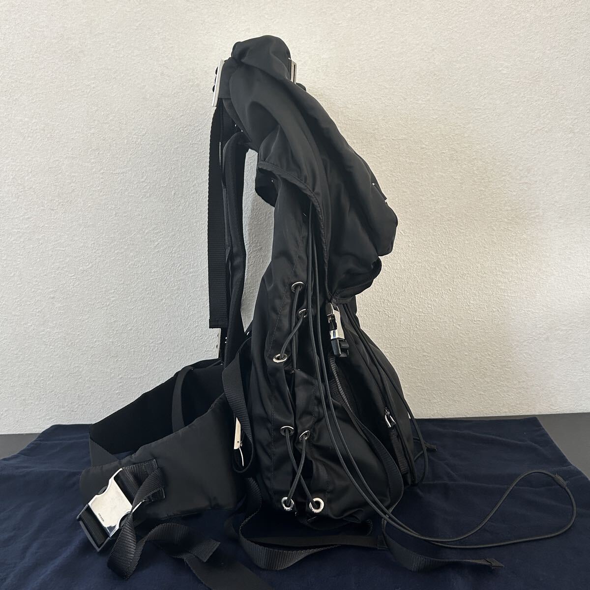 上質なナイロン生地を使用したバックパックです。ショルダー部分には定番のロゴマークプレートがデザインされています。大容量でタウンユースはもちろん、アウトドアなどでも活用いただけるアイテムです。こちらは著名人がリリース当時に紹介していたサイド部分にドローコードの付いた超希少なモデルとなります。