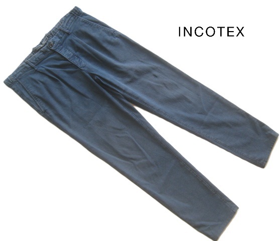 極上ルーマニア製!!インコテックス INCOTEX*定価3.4万 ヴィンテージ加工 ドローコード入り ストレッチコットンスラックス・パンツ 31 紺