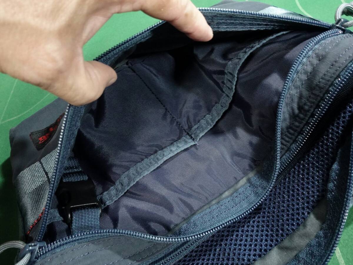 メイン室内には、メッシュ状のクッション素材がライニングされたタブレット/小型PCスリーブ。