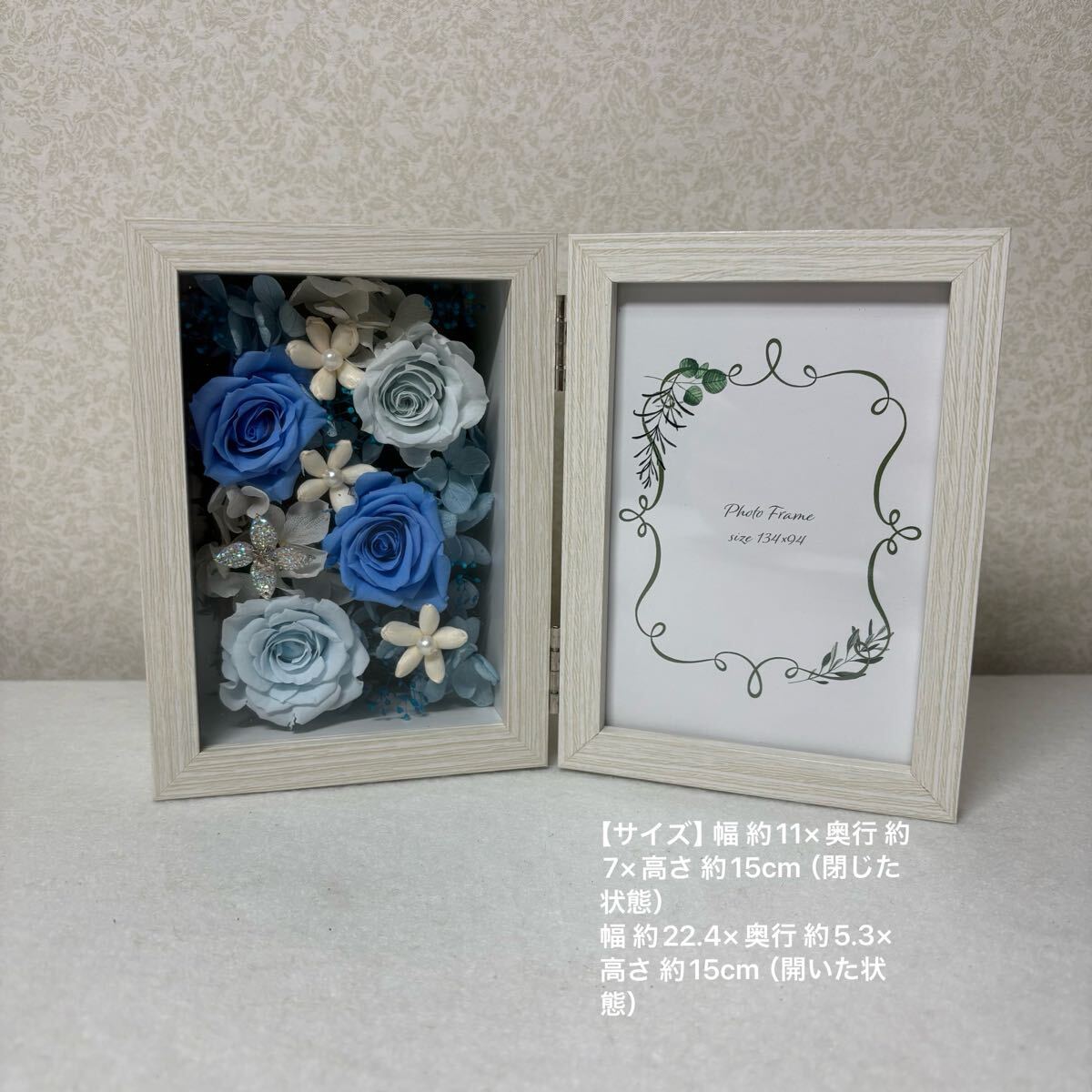 商品 : (clover-green)ブルーのプリザーブドの写真立て