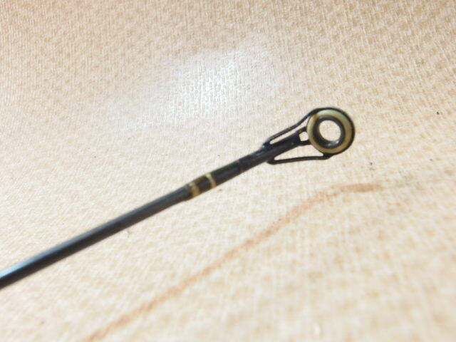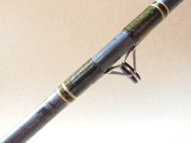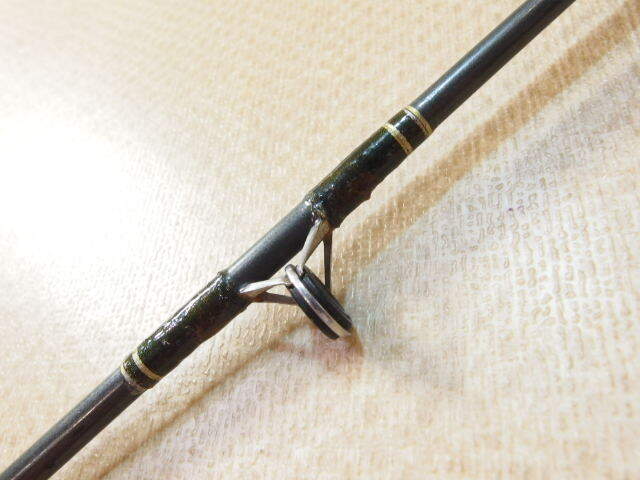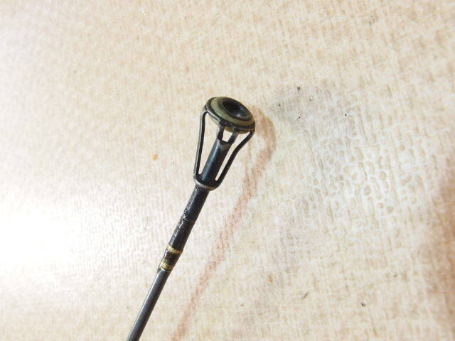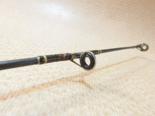 ■コンディション詳細 : メーカー名、品番、スペックの文字が全て消えていますが、下部の飾り帯、ブランクやスレッドの色などで判断してガルシアのロッドに間違いありません。 スレッドのコーティングが上塗りされて再コーティングされています。素人の仕事なので、コーティングに気泡、塗リムラがあります。 ブランクは複数の傷、汚れがあります。 元々のグリップが取り外されチャンピオンフェルールが付けられています。 使用に問題がある様な傷はありません。
