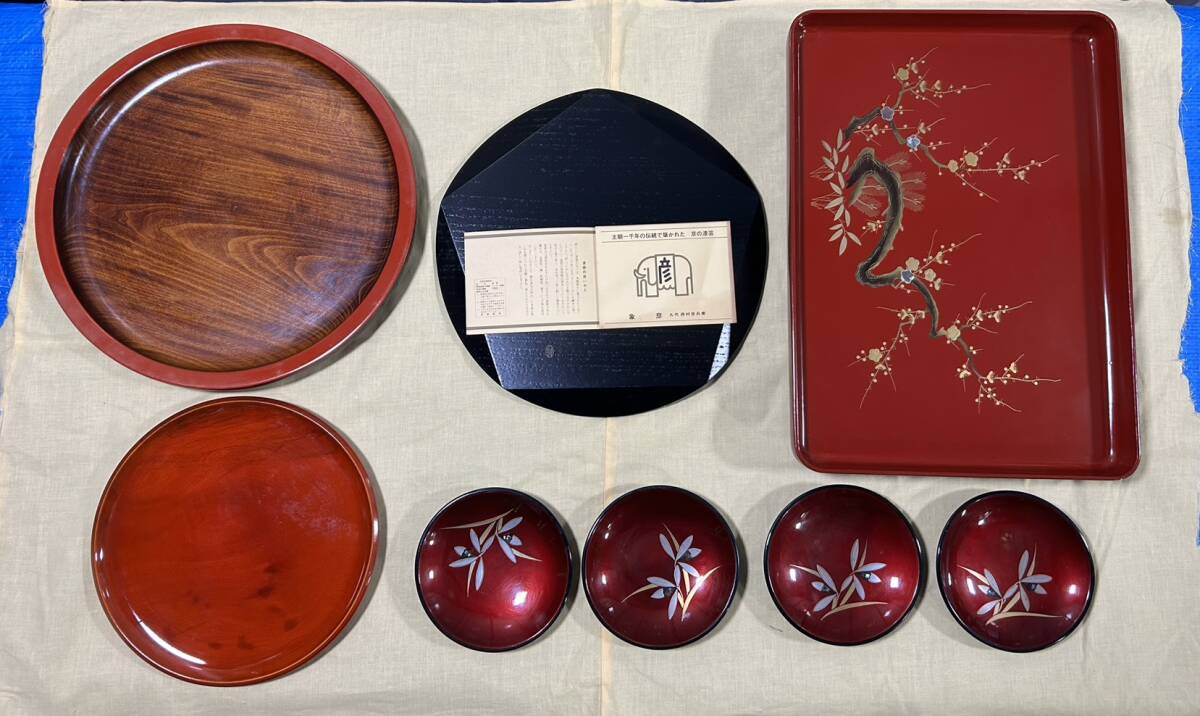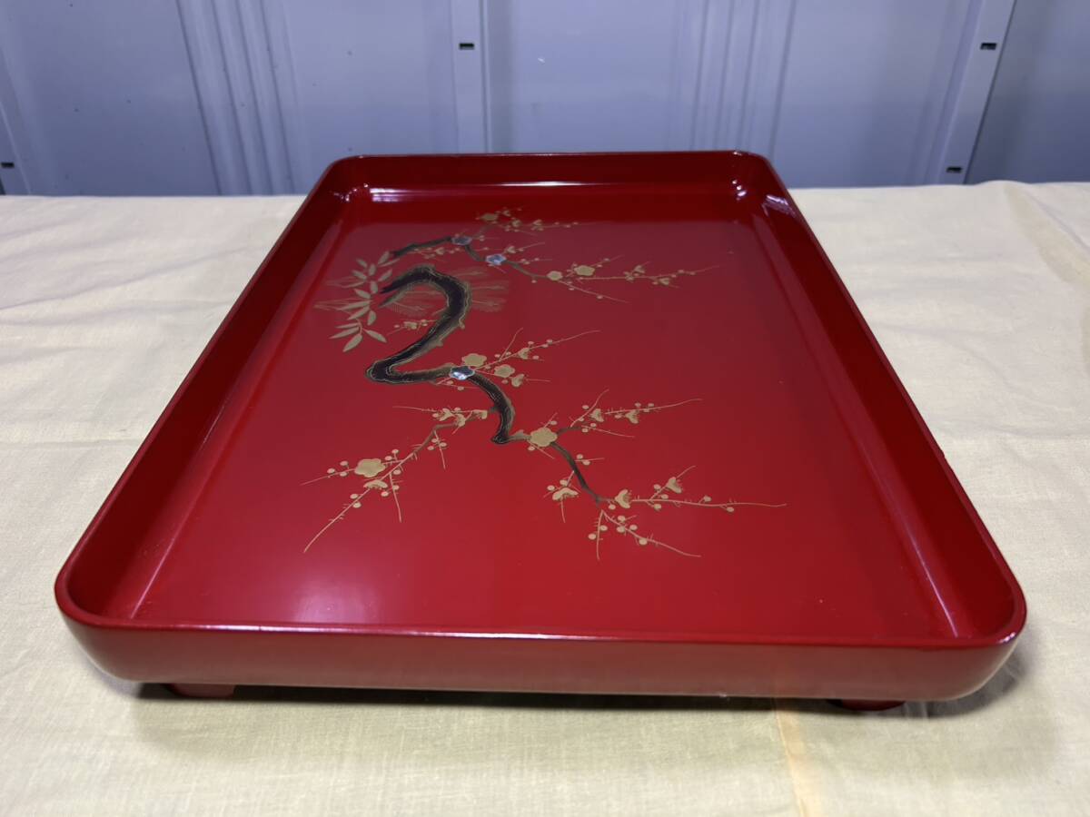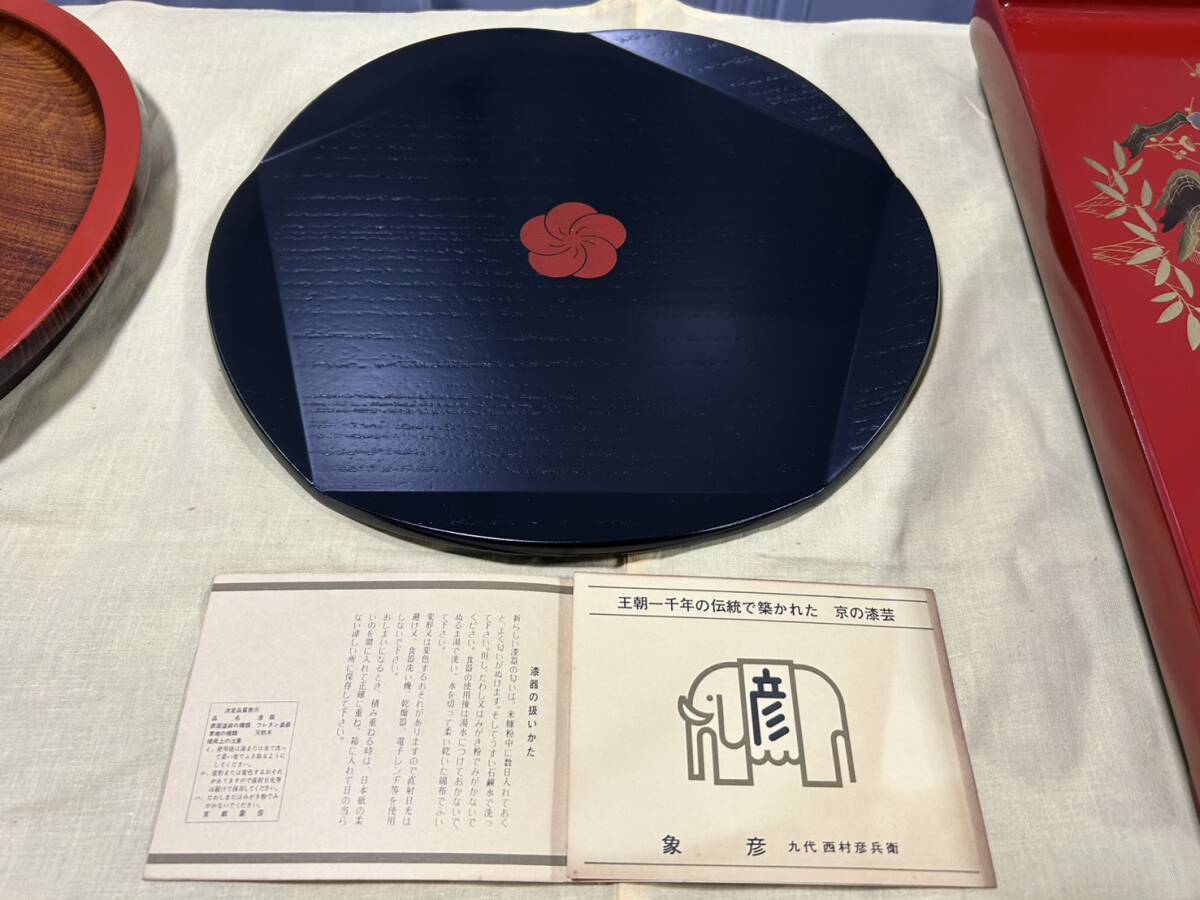 【希少価値品 書道先生放出品】象彦 西村彦兵衛 梅形盆 漆器 朱黒 日本の伝統工芸 梅 盆 トレー お盆 丸盆 菓子器 梅文様 梅模様 吹上盆