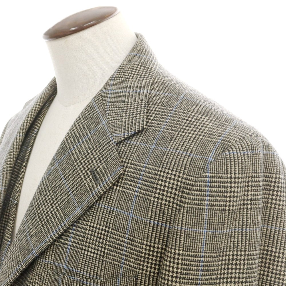 【中古】チロパオーネ キートン Ciro Paone Kiton ウールカシミヤ スリーピース チェック 3つボタンスーツ ベージュxブラック【52】
