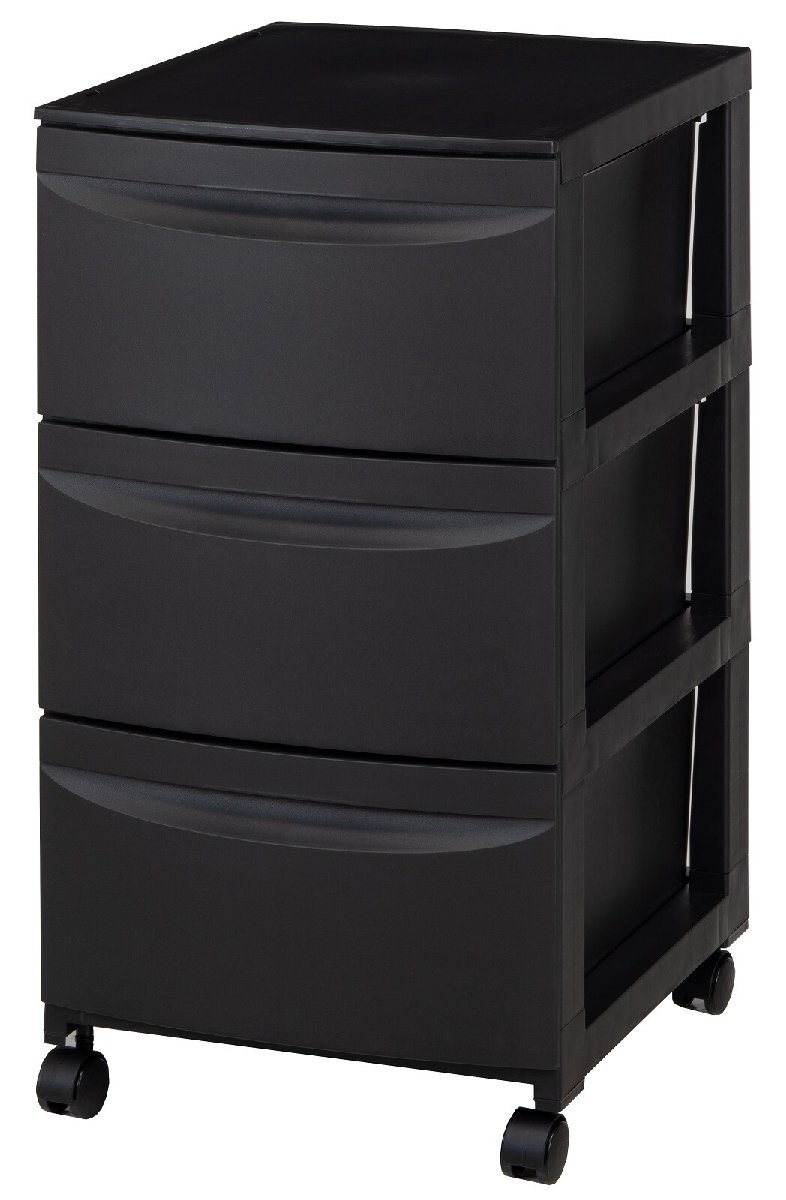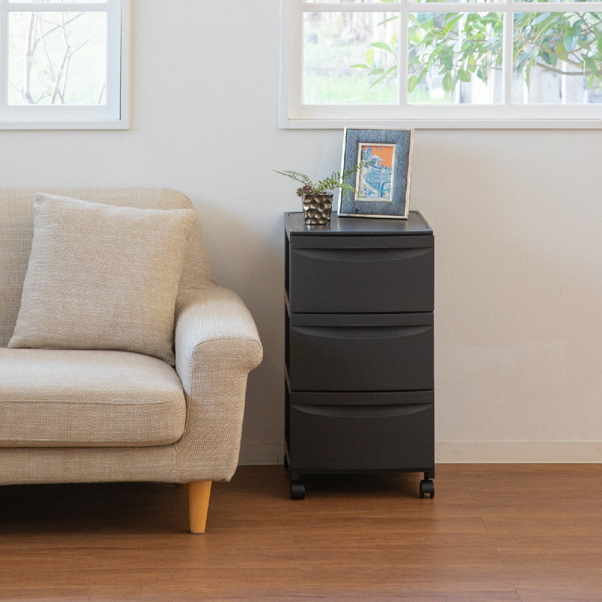 即決可@新品[日本製収納ケースプラスチック]キャスター付収納スリムチェスト3段ルーセント363引き出し式衣類ケース/ダークグレー | ||||||||||||