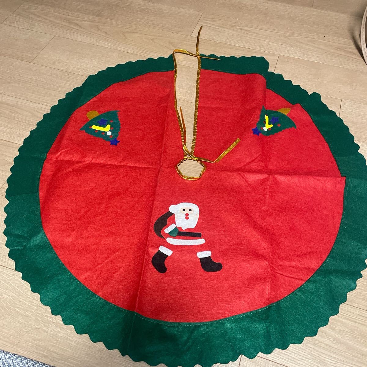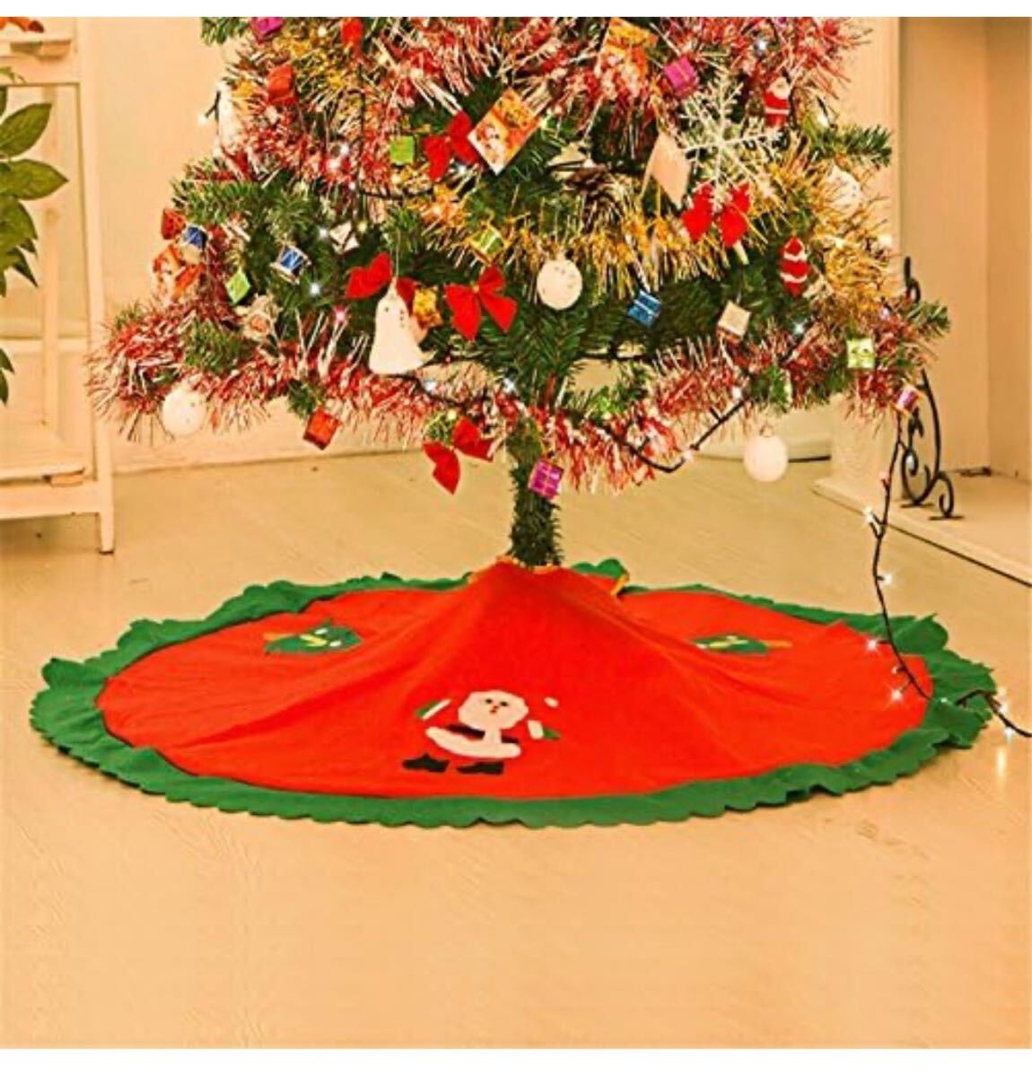 クリスマスツリースカート サンタプリント 36インチ 不織布 ダブルレイヤー レッド&グリーン ラスティック クリスマス ホリデー インドア アウトドア ホームパーティー デコレーション